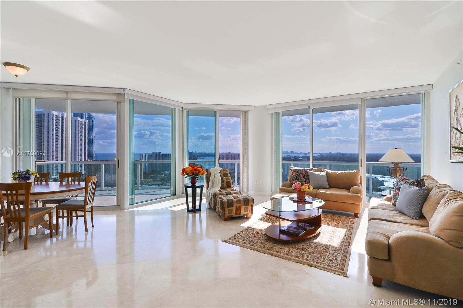 PRICE INCLUDES AIR-CONDITIONED POOL CABANA WITH FULL BATH & 2 PARKING SPACES. Enjoy panoramic views of the Intracoastal and Oleta River State Park to the west, ocean views to the east and the downtown Miami skyline to the south. The residence features high ceilings, beautiful polished marble floors, den with sliding glass panels, large open balcony and full hurricane shutters. Luxury resort like amenities including a private beach club with food and bar service, fitness center, cardio/weight training room, aerobic studio with daily spinning, yoga, pilates and Zumba dance classes, 2 oceanfront restaurants, beauty salon and tennis courts. Marina slips available for rent or purchase. Vacant and easy to show.