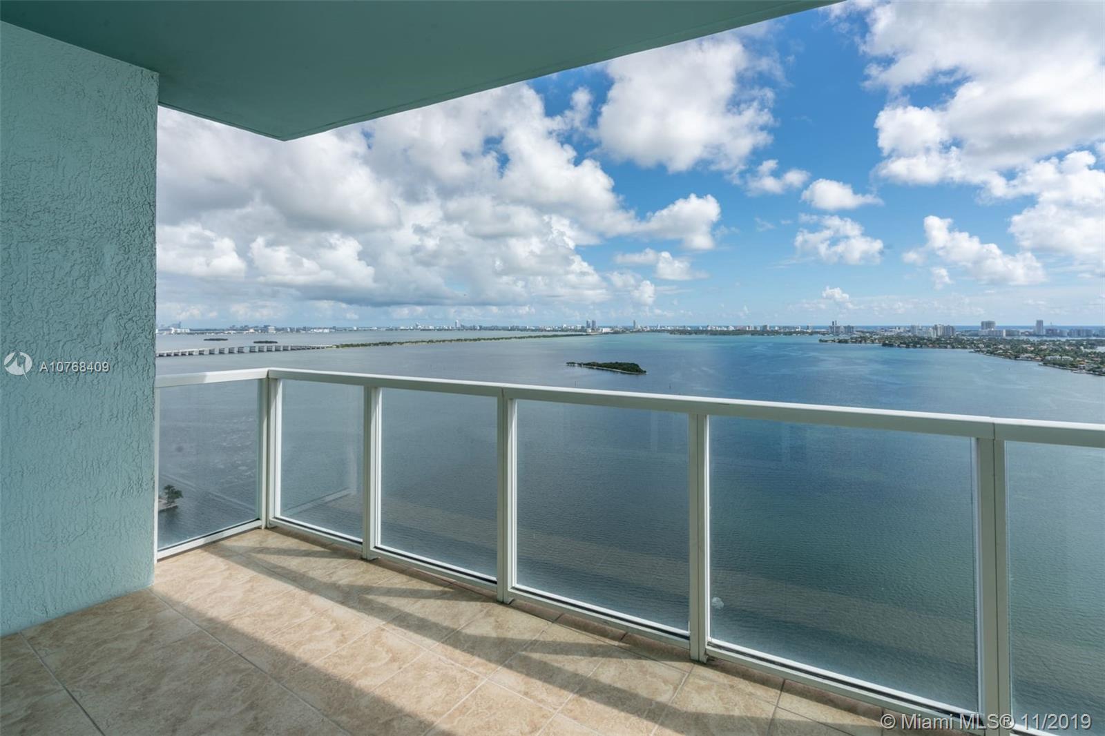 Spectacular 2/2/5 + Den with a direct breathtaking water views. Best line in the building with wrap around terrace and a split bedroom floor plan. Custom Built Walk-in-Closets and updated flooring. 2 parking spaces included. Amenities include 2 pools, 2 story gym, sauna, beautiful lounge area and much more... Close to downtown Miami, Midtown, Wynwood, Design District and South Beach. Easy commute to airport.