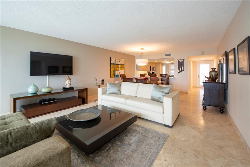 BEAUTIFUL UPDATED CONDO WITH GORGEOUS OCEAN & INLET VIEWS! FANTASTIC LOCATION ADJACENT TO THE WIDEST PART OF FORT LAUDERDALE BEACH. KITCHEN RENOVATED W/MODERN LIGHT TONED CABINETS, QUARTZ COUNTERS & STAINLESS APPLIANCES. SNACK BAR PERFECT FOR ENTERTAINING OPENS TO SPACIOUS LIVING/DINING ROOM ALL WITH OCEAN VIEWS! TRAVERTINE MARBLE FLOORS THRU OUT. HURRICANE IMPACT WINDOWS AND DOORS. LARGE MASTER BEDROOM & BATH W/ BEAUTIFUL OCEAN VIEWS! WALK IN CLOSET. HALF BATH IN HALL FOR GUESTS. WASHER & DRYER IN UNIT. SPACIOUS BALCONY OVERLOOKS POOL, INLET AND OCEAN! BUILDING HAS PRIVATE BEACH ACCESS, IS IN AN EXCELLENT LOCATION, HAS 24 HOUR GUARDED SECURITY, A FITNESS ROOM, A HEATED POOL, AND UPGRADED AMENITIES...CLUB/SOCIAL ROOM & KITCHEN. OCEANSIDE LIVING AT IT'S BEST!