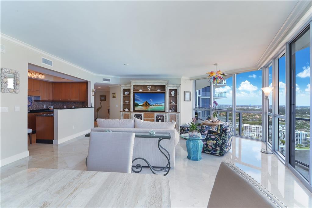 JAW DROPPING VIEWS FROM THIS 28TH FLOOR PIED A TERRE! DESIGNED WITH THE BEST OF EVERYTHING! PRIVATE ELEVATORS REVEAL WIDE OPEN OCEAN AND INTRACOASTAL VIEWS. SHINING MARBLE FLOORS, SNAIDERO EUROPEAN DESIGNED KITCHEN WITH SUBZERO, MIELE , THERMADOR APPLS WITH GLASS MOSSAIC BACKSPLASH AND WALL! WATCH THE CRUISE SHIPS AND REGATTAS FROM YOUR EXPANSIVE & OVERSIZED BALCONY. THE LIGHTS AT NIGHT ARE SPECTACULAR.ASK FOR A SUNSET SHOWING! 2 BEDROOMS, 3 BATHROOMS WITH SEPARATE LAUNDRY ROOM W/GRANITE &STAINLESS SINK. BEDROOM 2 HAS IT A OWN ENSUITE BATHROOM AND PRIVATE BALCONY! CUSTOM CLOSETS,CLOSE TO GULFSTREAM, AVENTURA MALL, AIRPORTS, SOUTH BEACH AND FT. LAUDERDALE. 24 HR VALET, POOL SERVICE,2 STORY EXERCISE ROOM OVERLOOKING THE POOL &OCEAN, NEW POLY CUSHION TENNIS COURT & MORE!