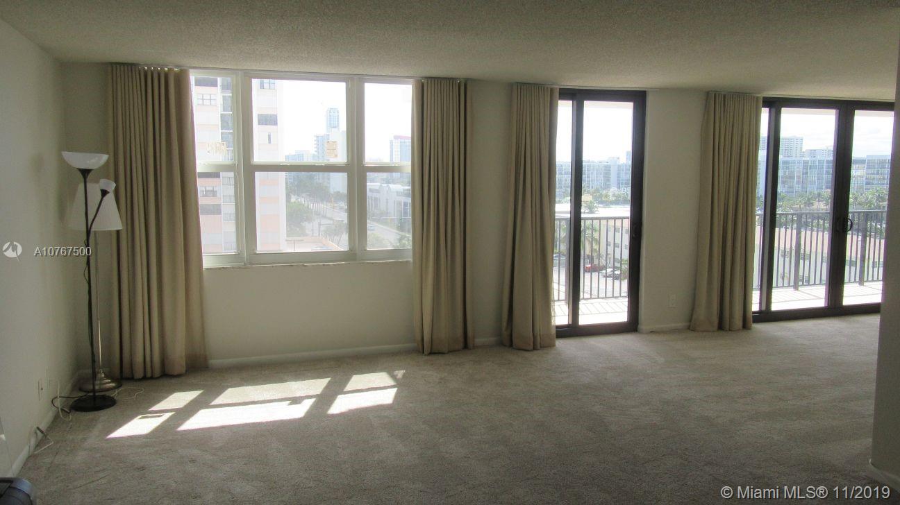 Very large and bright one-bedroom two-baths unit in Quadomain Grenoble building with great Intracoastal views. Unit has brand new impact windows and sliding doors, large balcony with new railings, new carpet, ceilings just brushed and painted. Largest one bedroom unit of 1350 sft. Living room is L-Shaped creating a den that in other similar units has been converted in a second bedroom or office. Complex has direct beach access, two large heated pools, gym, restaurant, business center, sauna & steam room, beauty salon, game room, valet service, security and 24hrs secured front desk. One covered assigned parking with the unit. Basic cable TV included. Walking distance to Hollywood Beach Broad Walk with its restaurants and entertainment. Minutes from Aventura Mall and FT Lauderdale Airport.