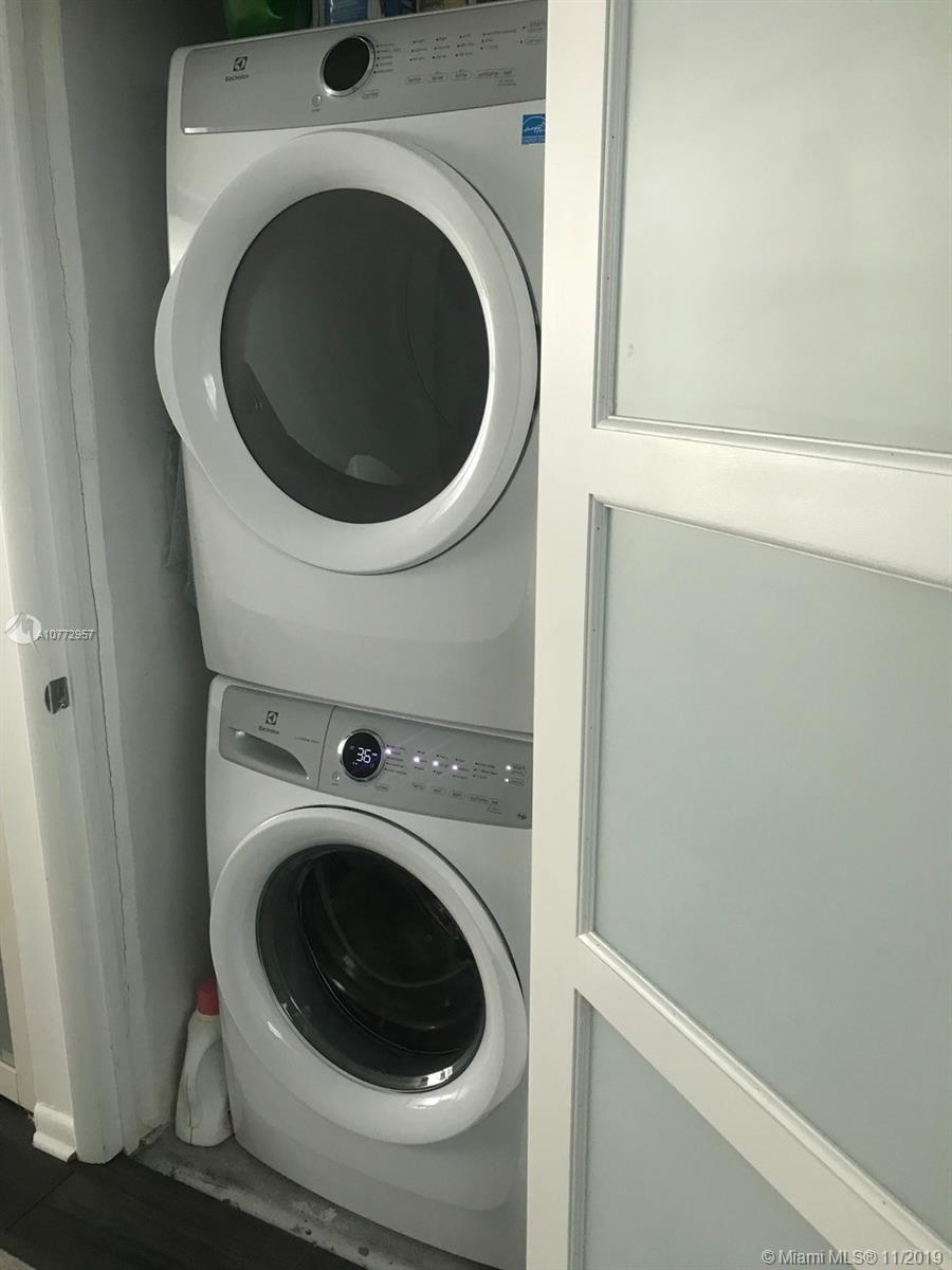 Stunning large, modern 2 bedroom/2 bath open concept loft with 12ft ceilings, 1848sq ft spacious floor plan, central AC, dark grey laminate wood flooring throughout and a new washer/dryer. Both bedrooms have walk in closets with an extra storage cabinet in the main bathroom. Floor to ceiling windows overlook west facing view of bay and gorgeous sunsets. Space 01 is a unique, award winning design building with creative and professional residents. Located in North Bay Village, this condo is conveniently located less than 15 min to downtown, Midtown, South Beach and Aventura. Amenities include heated rooftop swimming pool with jacuzzi spa, rooftop garden, full fitness center and secure covered garage parking for 2 vehicles.