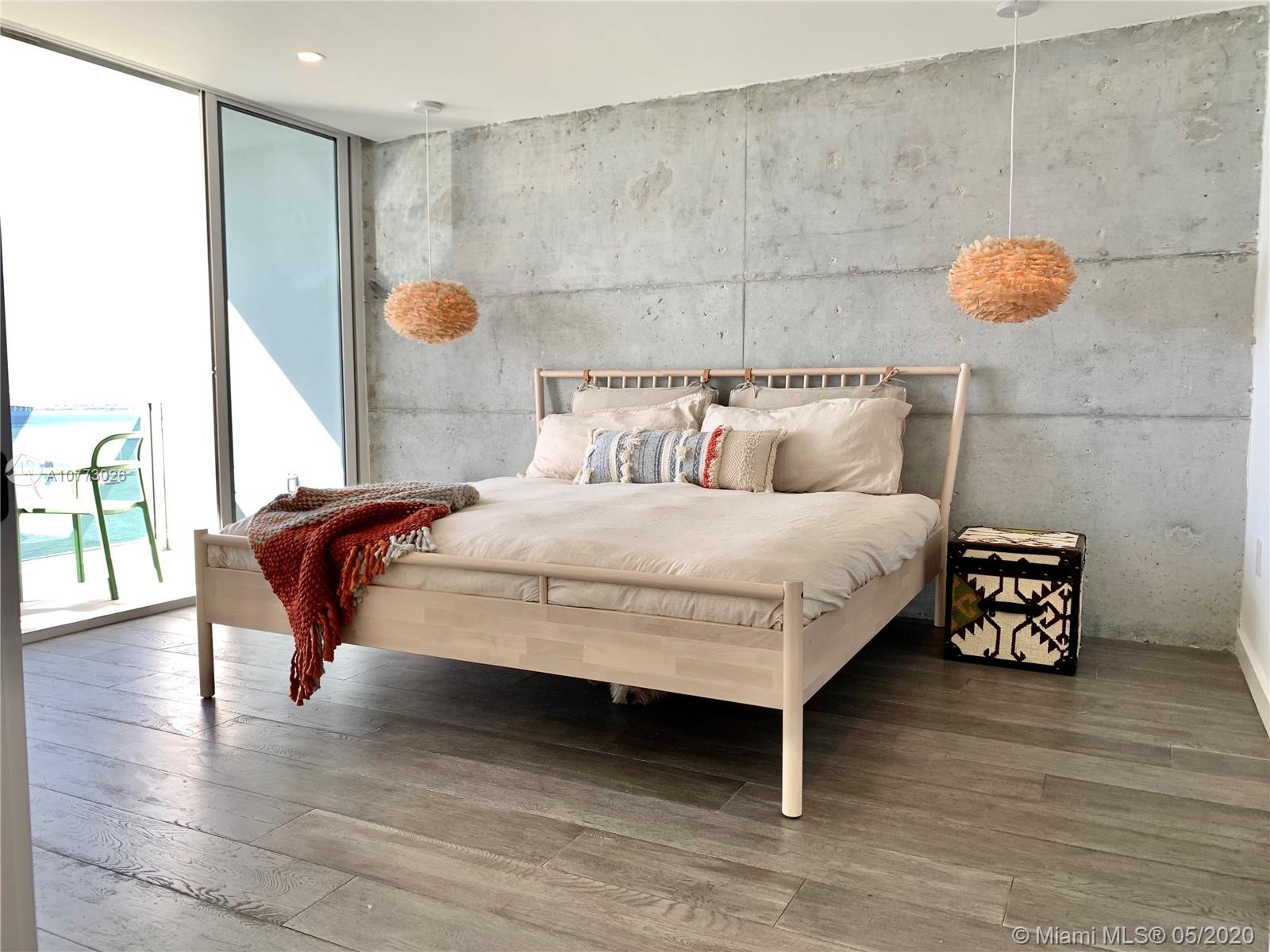 DIRECT BAYFRONT NEWLY COMPLETED/NEVER OCCUPIED following 18mo gut remodel by renowned design/developer team. RARE two-story condo (1 of only 4) boasts 1,420sf, 2br/2.5ba & an OPEN LIVING PLAN. CUSTOM DESIGN throughout featuring one-of-a-kind sculptural STAIRCASE IMPORTED FROM ITALY, hardwood floors, CHEF'S KITCHEN, honed granite counters, black SS appliances & DANISH LIGHTING. COHESIVE DESIGN IS MAGAZINE WORTHY. Bathrooms feature custom wall treatments/vanities, FIXTURES BY BRIZO & PORCELAIN TILE FROM SPAIN. No expense spared/no detail overlooked. BALCONIES ON TWO STORIES W/ EVERY LIVING & BEDROOM SPACE FACING OPEN BAY & DOWNTOWN MIAMI LIGHTS. BEST VIEW ON THE BEACH. Private quarters upstairs, open entertaining space downstairs. AVAILABLE FURNISHED. TEXT AGENT TO SHOW.