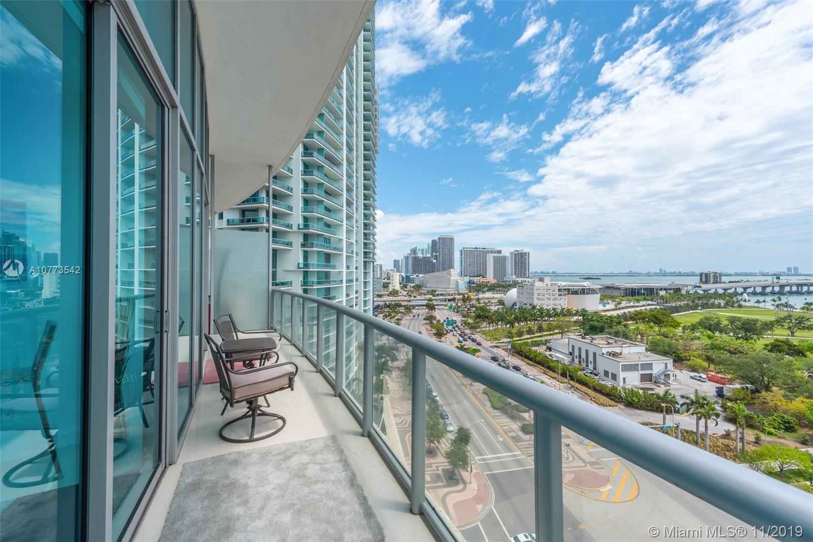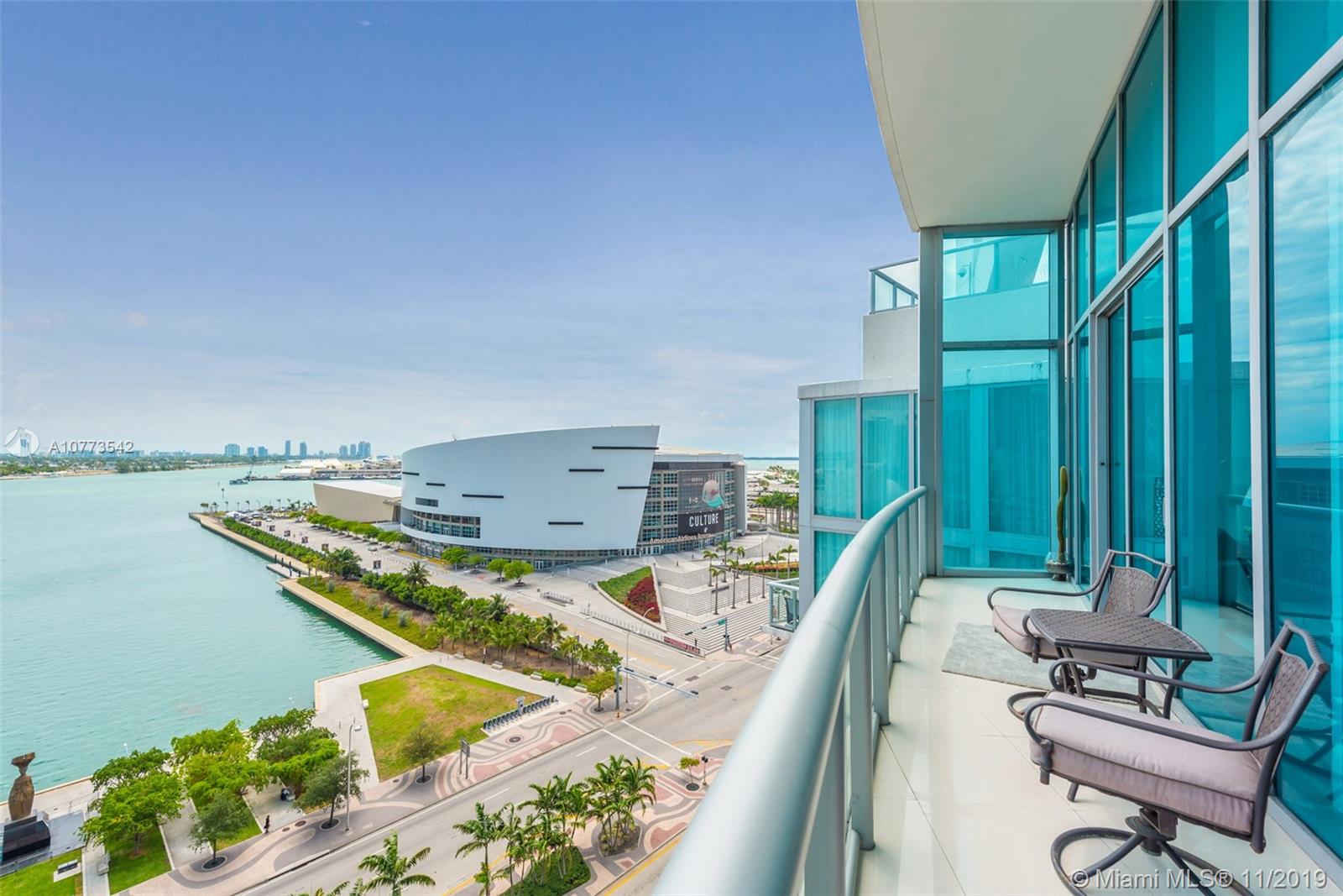 A beautiful 1 Bed + Den/2 Bath condo @ Marina Blue w/ 1,220 interior square feet, white porcelain tiled flooring throughout, new washer/dryer, new a/c unit, stainless steel appliances, and soaring 10.5-foot high ceilings w/ floor-to-ceiling glass windows offering direct, unobstructed views of Biscayne Bay, the cruise ships & Museum Park. Impeccable condition!!! The den is large enough to use as a 2nd bedroom. Includes 1 assigned parking space + storage cage. Building amenities include 2 swimming pools (sunset & sunrise pools), hot tub, fitness center, BBQ area, sand volleyball court, 24-hr concierge, 24-hr valet parking & business center. 1 block from the upcoming 9-acre, mixed-use development called Miami Worldcenter, 4 blocks from the Adrienne Arscht Center & 7 minutes from South Beach.