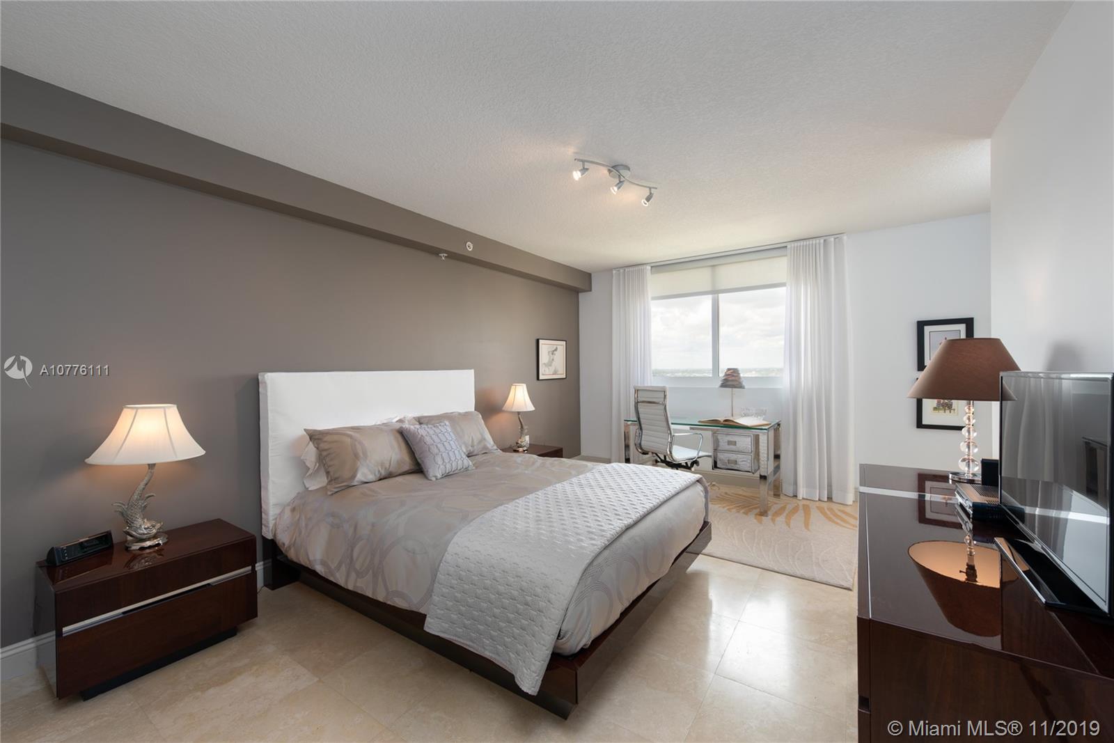Sleek and bright high floor corner unit with intracoastal, park and skyline views to the west and ocean views to the east from generous wrap-around balcony. Separate balcony off master BR. Large closets, marble floors, granite counters, stainless appliances, W&D and custom floor-to-ceiling drapes. Two assigned parking spaces. Two pets up to 50 lbs. each. The Vue offers valet parking, 24-hr. security, private beach club across the street with additional pool, jacuzzi, cabanas and deeded beach access. Walk to Birch State Park, minutes to festive Las Olas Blvd. and close to international airport. Owner-agent.