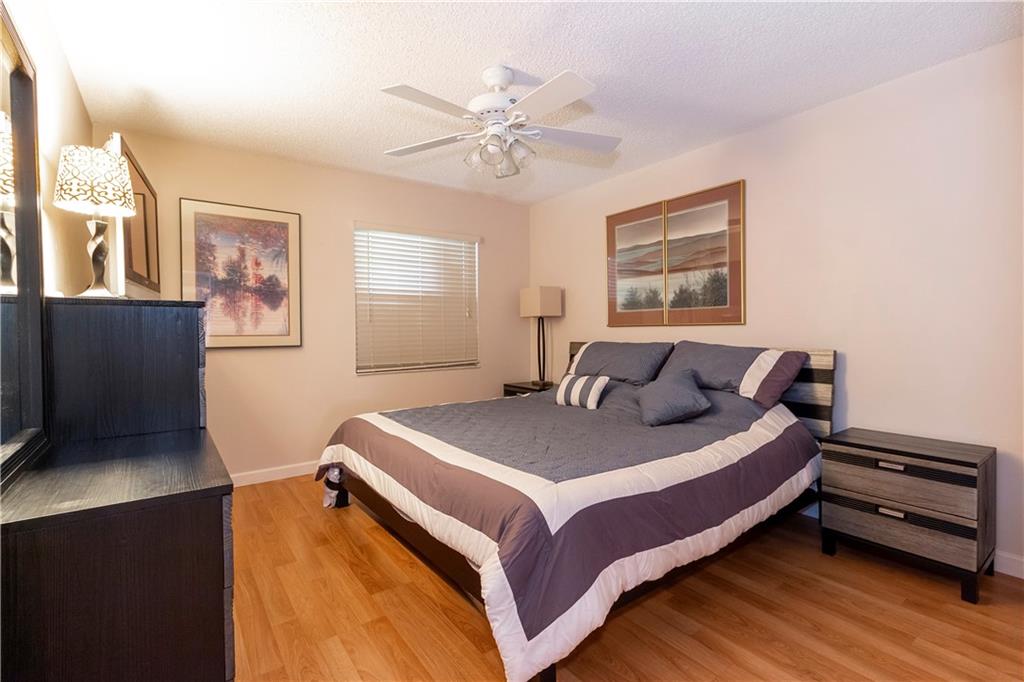 Welcome home to this 2 bedroom 1.5 bath condo. Enjoy the beautiful golf course and water view from the large screened in balcony. Terrace off the master bedroom has glassed in option. Hurricane shutters, laminate floors throughout, updated kitchen and baths ready to call home! Assigned parking space and plenty of guest parking. Convenient elevator access. IMPRESSIVE AMENITIES;135,000 sq. foot clubhouse, 1,042 seat theater, 23 indoor & outdoor heated pools, movie theater, health club facility, community buses, and many activities & classes.