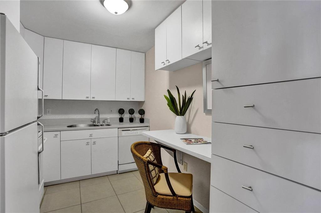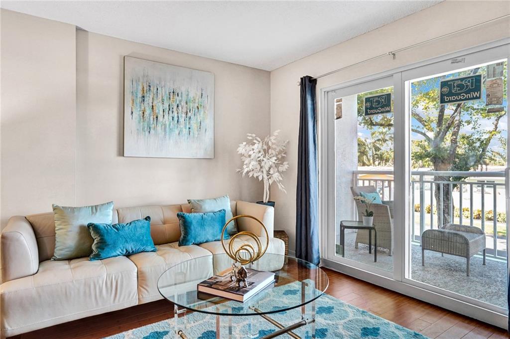 THIS IS THE ONLY 1 BEDROOM CONDO FOR SALE IN BUILDING! MOVE IN CONDITION; IN DESIRABLE "IMPERIAL POINT" NEIGHBORHOOD; ONLY 5 MINUTES BEACH. UPDATED WHITE KITCHEN W/ HERRING BONE PATTERN TILE BACK SPLASH, GENEROUS FLOOR TO CEILING WHITE CABINETS W/ BRUSHED STEEL PULLS & BUILT IN OFFICE/ WORK STATION. UPDATED WHITE BATHROOM W/ INLAID DECORATIVE TILE INSERTS. LARGE BEDROOM W/ 2 CLOSETS. IMPACT GLASS SLIDING DOORS LEAD TO LOVELY COVERED PATIO; PERFECT FOR MORNING COFFEE. AC 4-6 YEARS OLD, ALL NEW ELECTRICAL & CIRCUIT BREAKER BOX & FRESHLY PAINTED INTERIOR W/BAMBOO FLOORS IN LIVING ROOM/ DINING ROOM & BEDROOM. WALK AROUND THE CORNER TO DINING, SHOPPES, LIBRARY & HOSPITAL. UNIT COMES WITH BEST PARKING SPOT CLOSEST TO THE MAIN ENTRANCE. BEDROOM WINDOW IS NOT IMPACT GLASS.