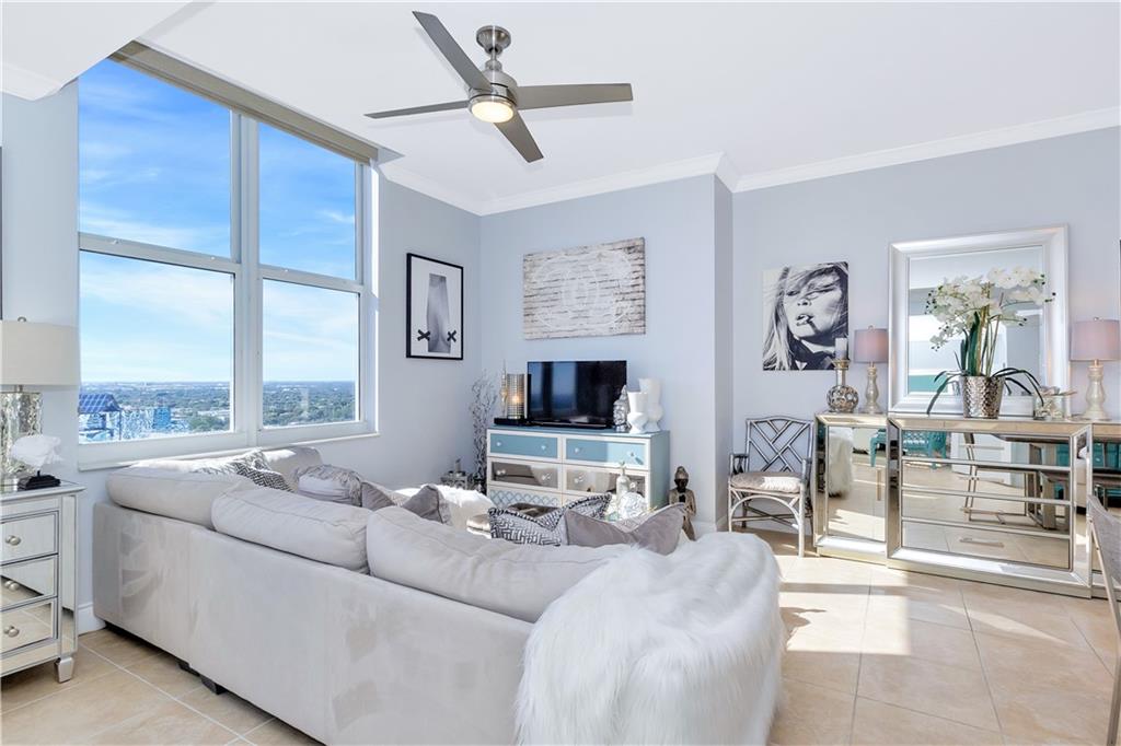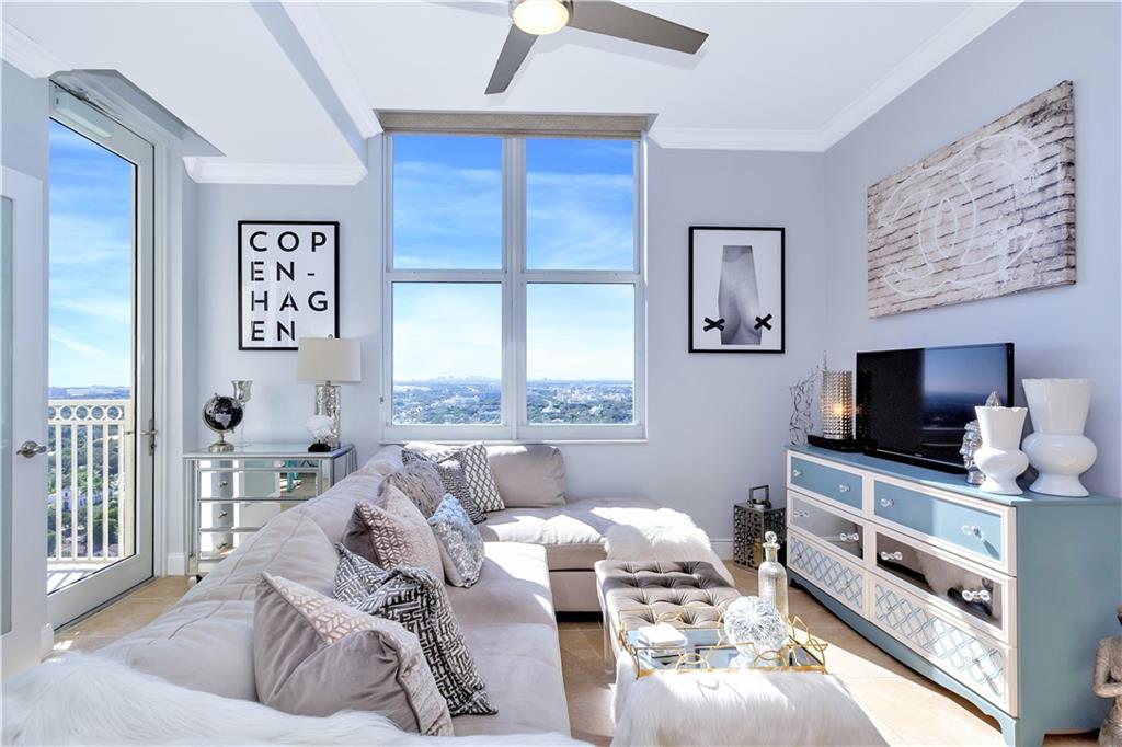 Beautifully FURNISHED, Upgraded, meticulously cared for, 1BR/1BA+DEN, SUB-PENTHOUSE unit. ONE-OF-A-KIND FLOORPLAN. *None other like this in the entire building!*STORAGE CAGE INCLUDED (Located on same floor)* Expansive southern city, ocean, port & airport views from every room/balcony. Grey "wood-look" vinyl flooring in Master bedroom. All doors, including french doors have been upgraded to modern frosted glass doors. Italian shaker cabinetry, Neutral granite countertops & backsplash in kitchen & bath. Private balcony w/ direct access to both the livingroom & slider to the den. 2 story gym w/ B-ball/Racquetball courts. Rooftop club room & pool. 6th fl BBQs, Jacuzzi, Steam room/sauna, Business center & library. 24 hour Valet & Security. Located dwntwn - walking distance to Las Olas Blvd.
