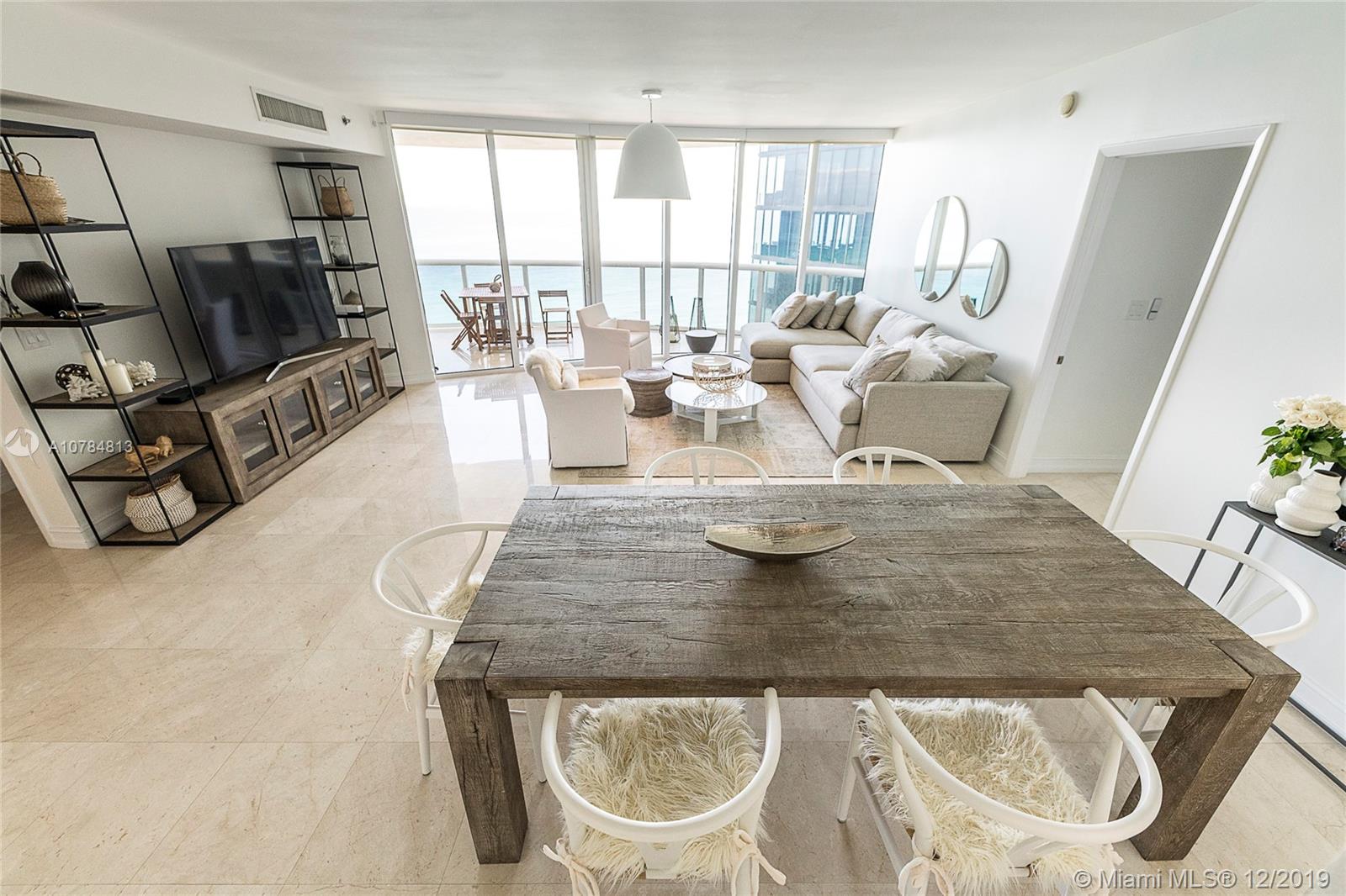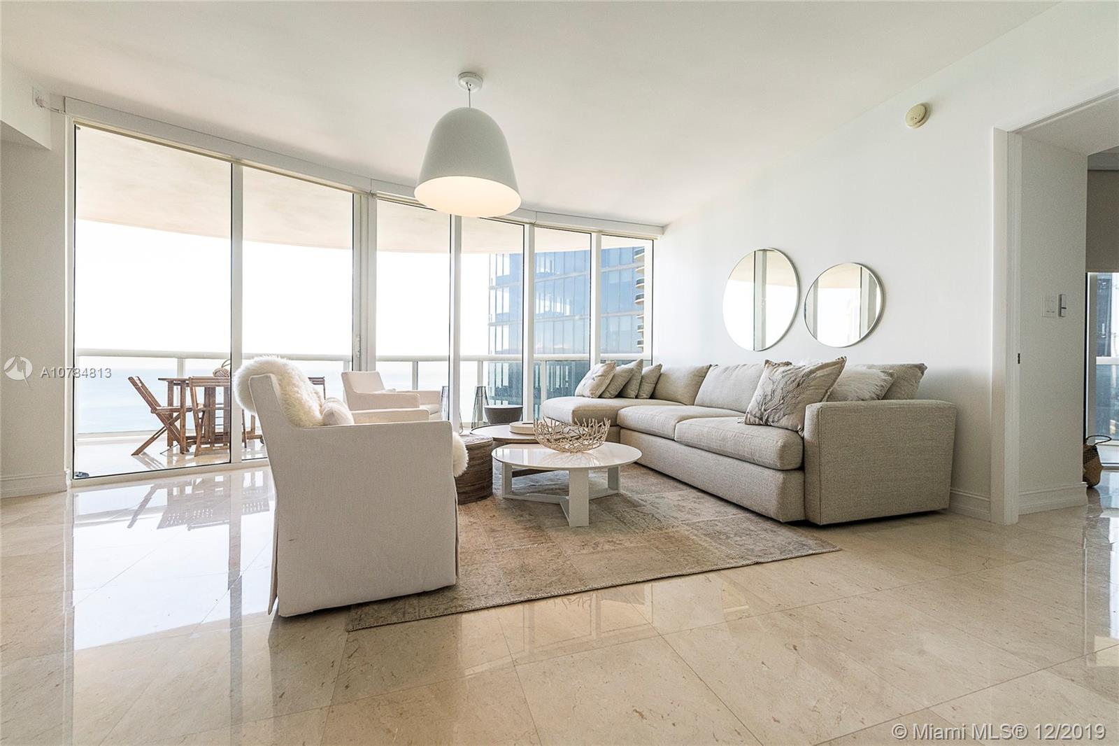Beautiful 2beds/2baths Luxury ocean front Condo resort living all year round. Smack on the beach with breathtaking un-obstructed direct ocean views from your balcony and every bedroom and master bath. Beautiful neutral color marble flooring throughout. Kitchen features Miele and Subzero appliances and granite countertops. Jacuzzi tub in large master bath, oversized showers, bidet as well as dual sinks. Huge master walking closet. Impact windows, wide spacious balcony. 1,583 Sq Ft. Tenant occupied until July 2021.