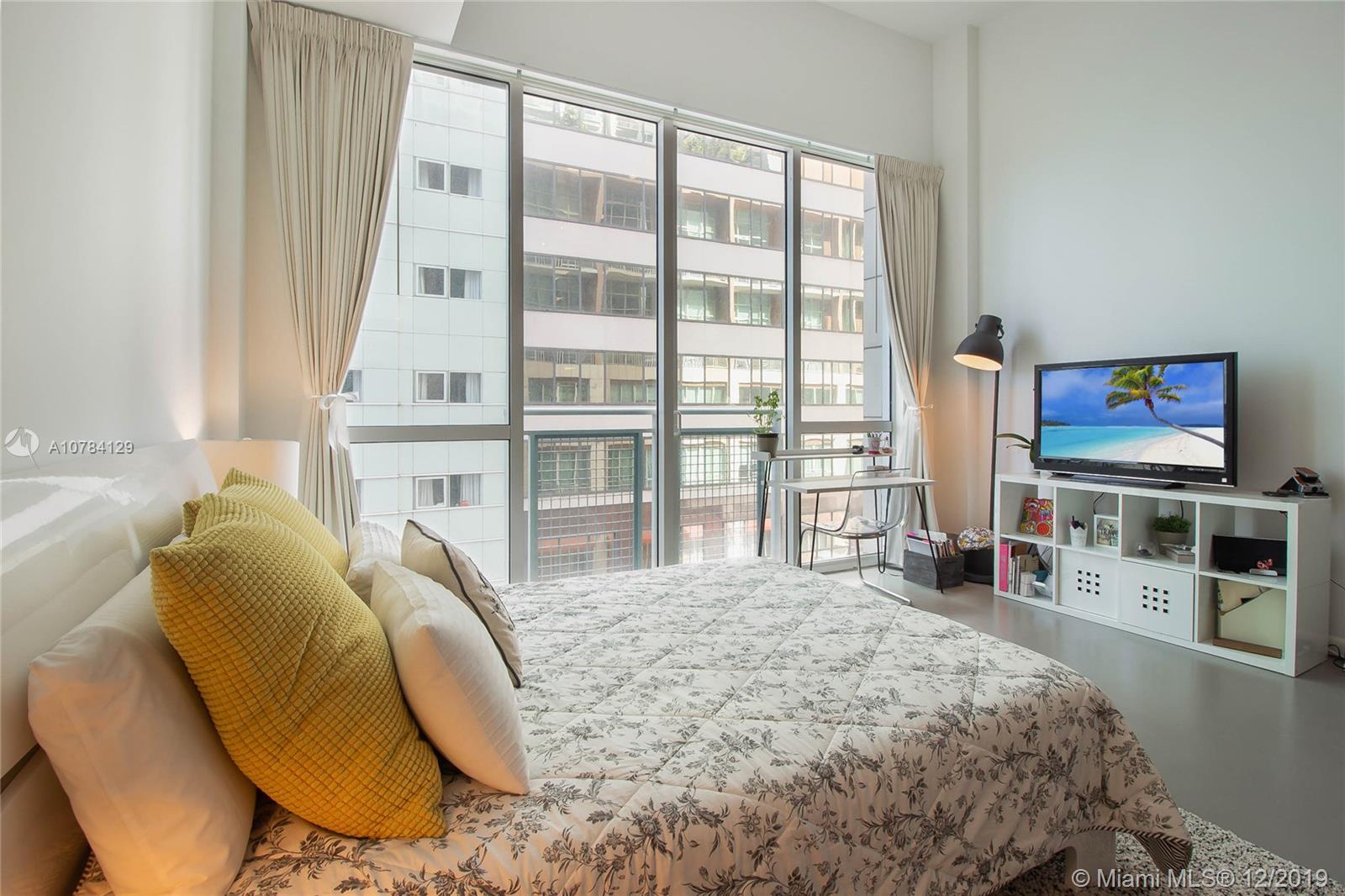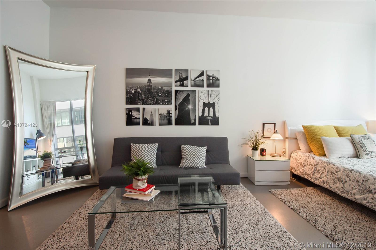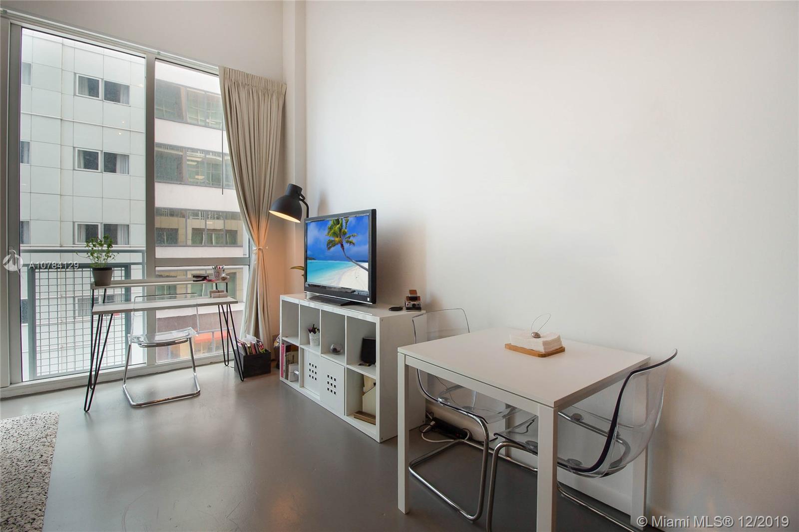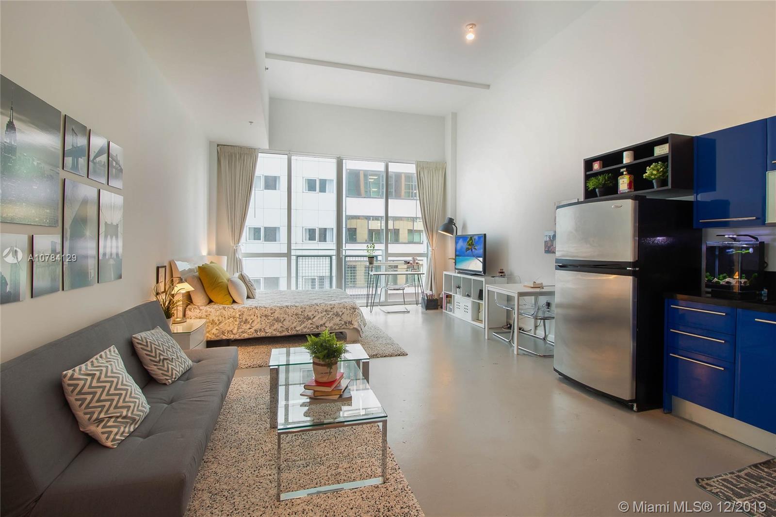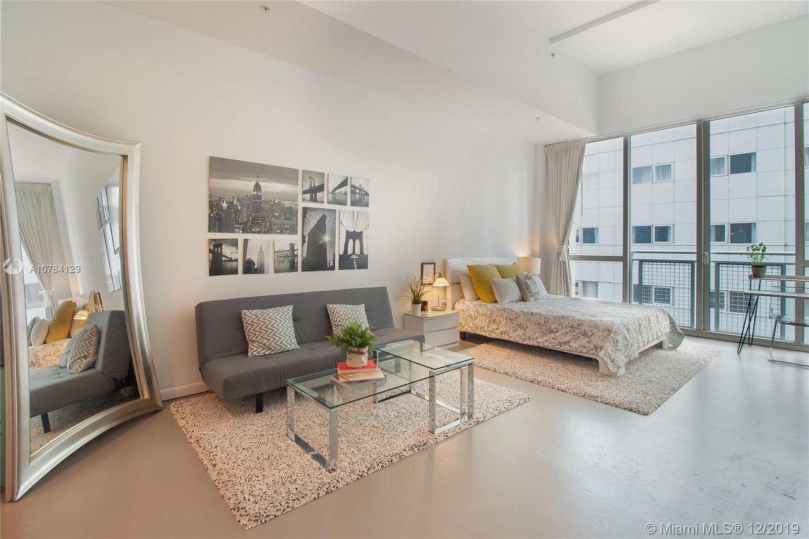 Spectacular Furnished Studio + 1 spacious bath Condo in one of Miami‘s finest properties. Unit has concrete floors & very high ceilings. Unit comes with 1 storage & 1 parking space.Tastefully decorated Lobby w/sitting area to meet your guests, front desk staff & Security, walk to Miami Arena, Bayside, restaurants, the Park, etc. It is currently rented at $1,600 per month until 02.16.20.