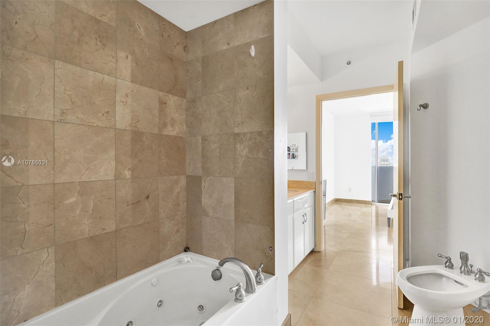ABSOLUTELY SPECTACULAR VIEWS OF THE OCEAN AND INTERCOASTAL WAYS. BEAUTIFUL CONDO IN THE MILLIONAIRES ROW. LARGE MASTER WITH BALCONY W/MODERN WALK IN CLOSET AND JETTED JACUZZI TUB. DESIGNED AS A 2BDRM-DEN/2BTH CONDO IS PRESENTLY SET UP AS 1 BDR+ WITH DOUBLE LIVING AREAS. 24" MARBLE FLOOR, OPEN KITCHEN WITH ITALIAN CABINETS AND GRANITE COUNTERS, SECURITY, FRONT DESK, 2 PARKING SPACES, VALET PARKING, POOL, BABY POOL, JACUZZI, SPA, FITNESS CENTER, TENNIS COURT, PUTTING GREEN, BBQ PAVILLON, BILLIARD ROOM, INDOOR RACQUET COURT, AMPLE PARTY ROME WITH TERRACE, CABLE AND WATER INCLUDED & MUCH MORE. Nowadays, this is the third tallest building in Miami Beach, after the 170 meter Blue and Green Diamonds. 1 block from two parks with a paver boardwalk for biking and jogging. A MUST SEE!!!!