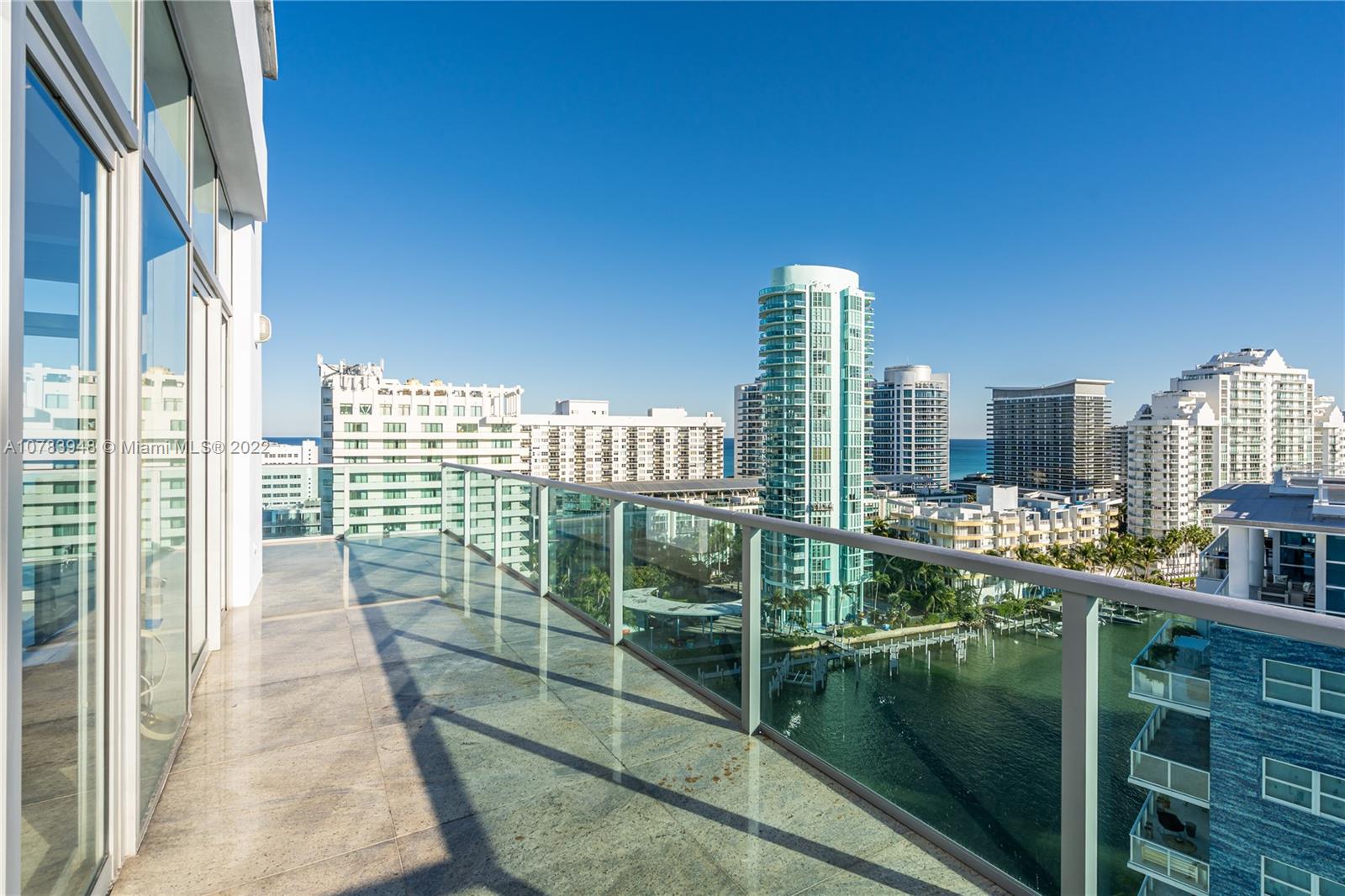 Sleek, modern Penthouse loft at Chatham at Aqua on Allison Island. 4.5 baths, Private Jacuzzi on the massive Private Rooftop deck. Amazing views of intracoAstal, ocean, golf course, and bay. 12.5 ft. ceilings, granite floors, super high end finishes. Bulthaup kitchen, Subzero fridge, 2 deeded parking with full use of 3rd parking space. Gated private island, with 24 hour security. State of the art gym, valet, concierge services, kids play room, 2 swimming pools,