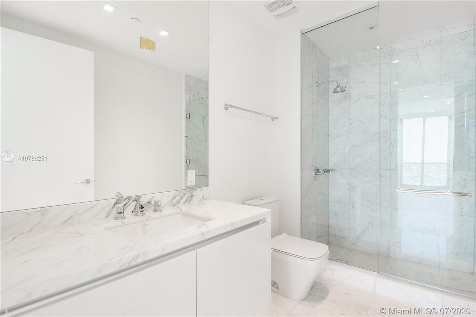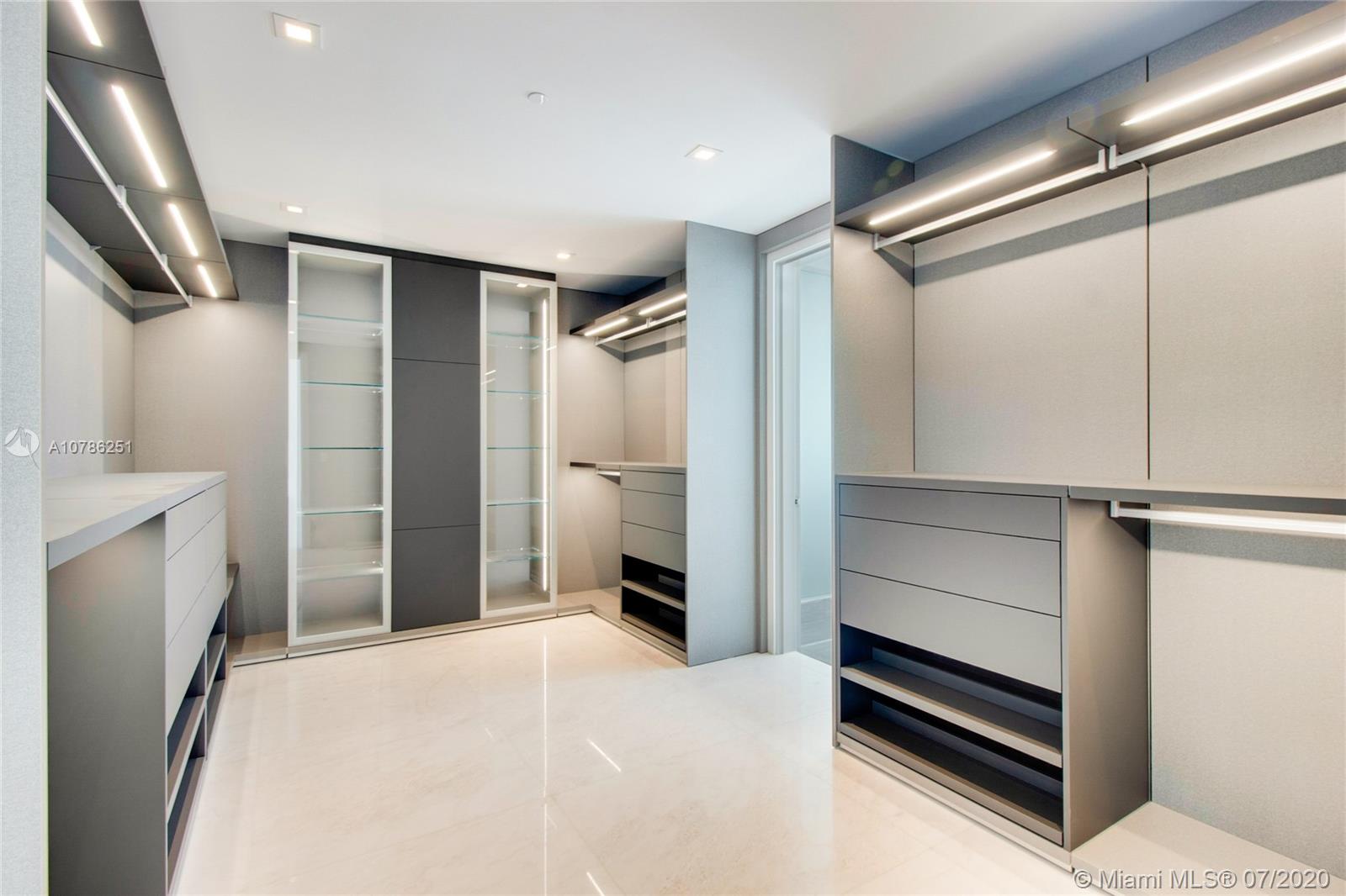 This E3 model has an exclusive 8 units in total in the entire building, from floors 43-50 on the south corner. It is the most spacious 5 bedroom floorplan in the building, with sprawling 4,953 sq ft of interior living and 180 degrees of unobstructed views of Downtown Miami, the intracoastal and ocean. This exclusive residence is fully finished with pristine white marble floors throughout and is in the process of being beautifully furnished by Artefacto. Photos shown are from 4801 and are for reference of units furniture potential layout and views only as 4901 is in the process of being completed
