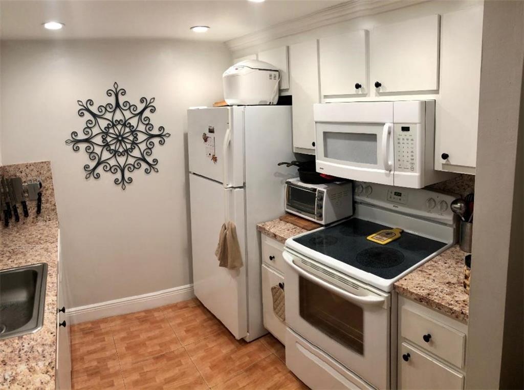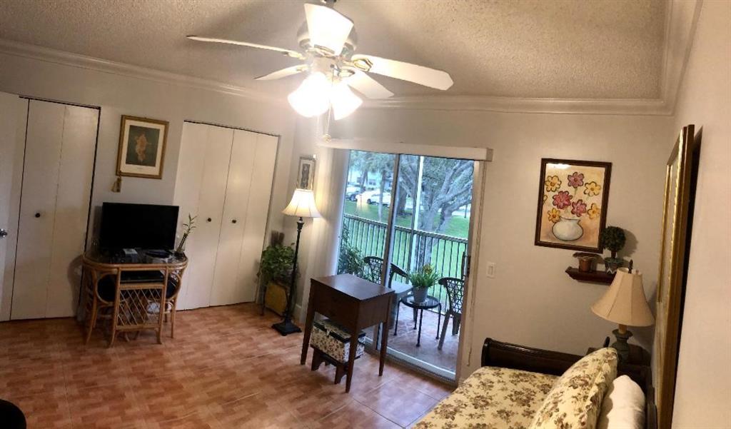 Beautifully updated one bedroom condo in active adult community. Tile flooring throughout, crown molding, updated bath, bright and neutral kitchen. Shows beautifully. Lots of storage! Tiled screened balcony off of master. Tankless water heater. Newer a/c. Accordion hurricane shutters! Conveniently located near elevator and utility room. Guard gated community with medical alert system, security, huge clubhouse, fitness/health center, bus transportation, tennis, pools, theaters, restaurant and more. 55+ community. HDTV with DVR, and high speed internet included in maintenace. Easy to show.