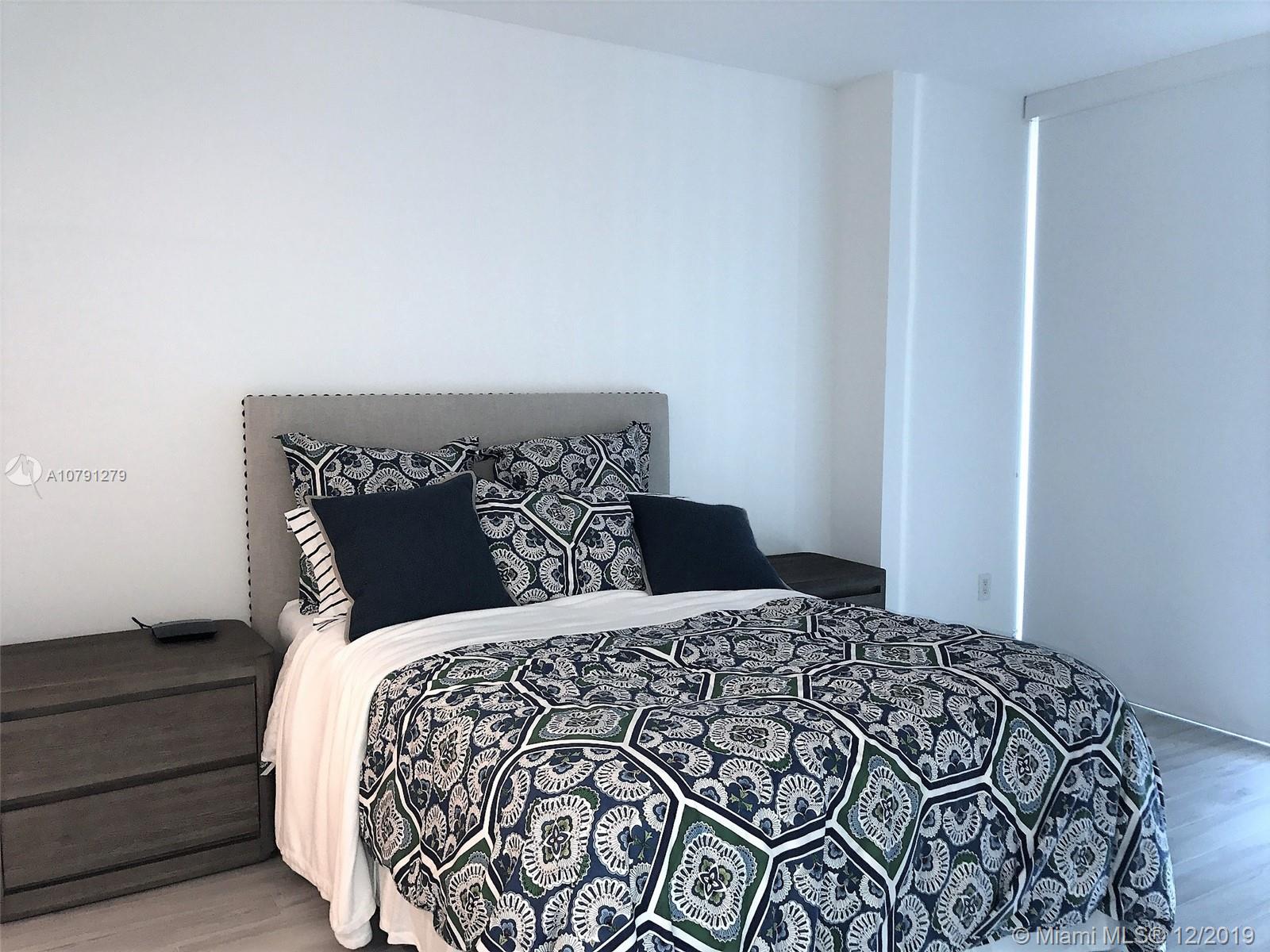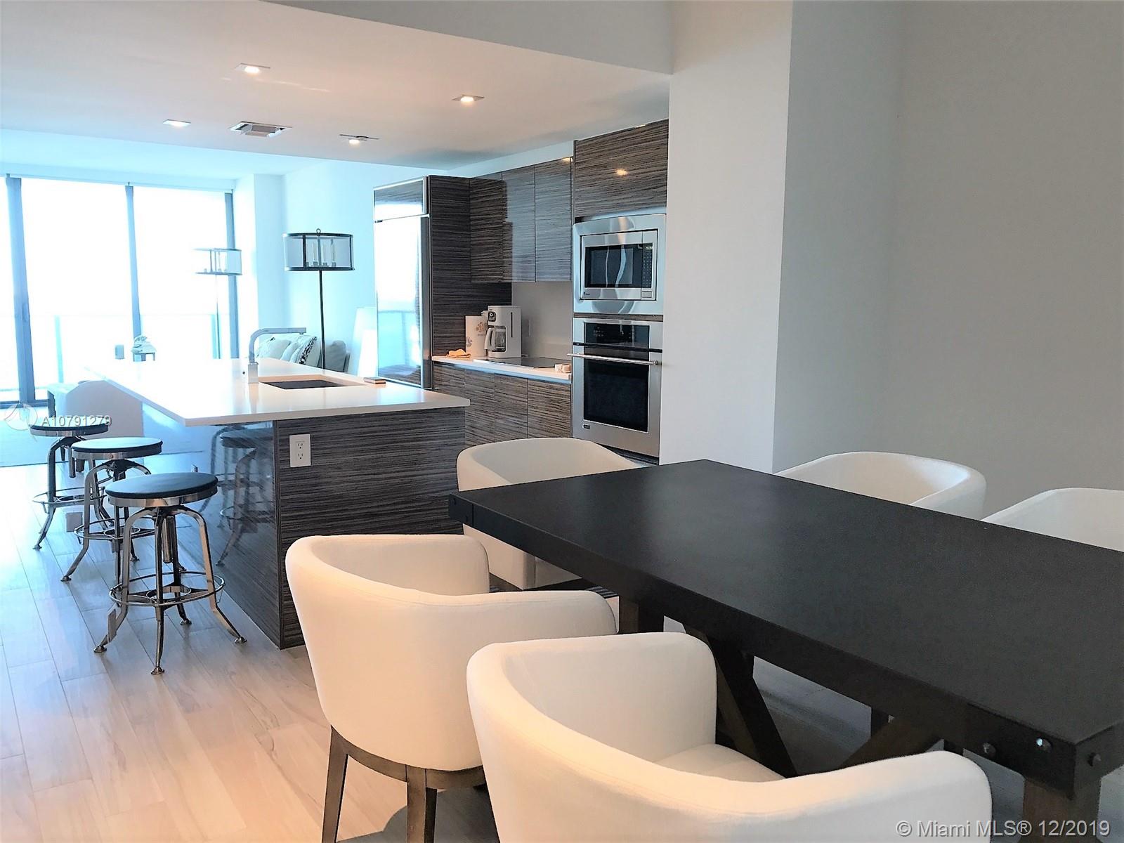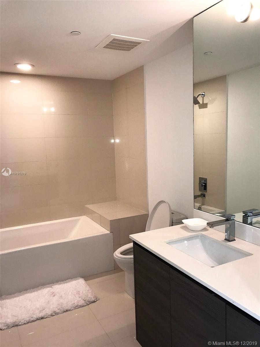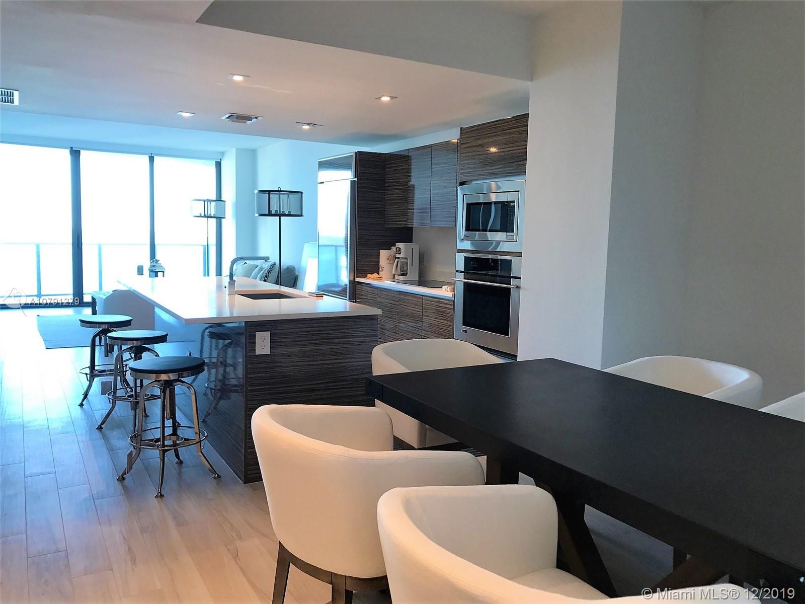 Incredible endless water views of Biscayne Bay. Newer 2 bed/2 baths w/private elevators & private foyer. Gourmet European Kitchen w/island and state of the art appliances. Sunk in tub in 2nd bath and sleek glass shower in master bath. Nicely upgraded unit with porcelain wood-like floors, custom designed closets, automated window shades, custom lighting and large terrace. Like new, never rented, never lived in, only occasionally by owners as a second home. Luxurious building with fine art and state of the art amenities: tennis, media room, billiards, sauna, gym, and pool overlooking the bay.