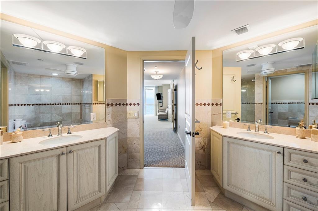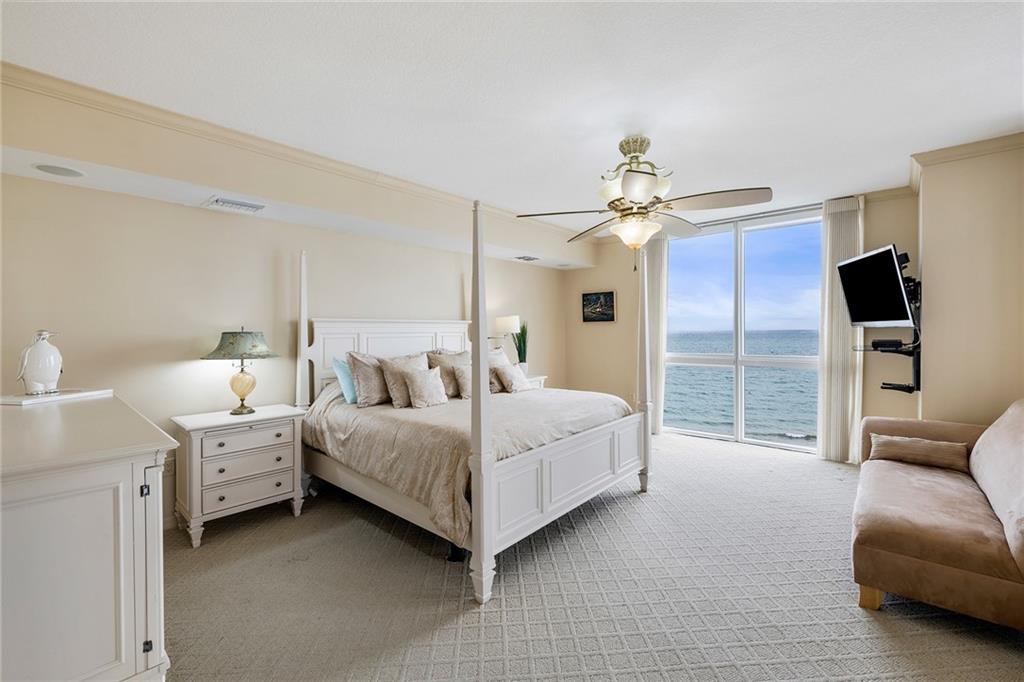 Spacious oceanfront condo with ocean views from the living room & master bedroom, with Intracoastal Waterway views from the 2 guest rooms and family room. Travertine Marble in living areas, carpet in all bedrooms. Semi-private elevator w/foyer & double door entry. 2 parking spaces & storage unit.