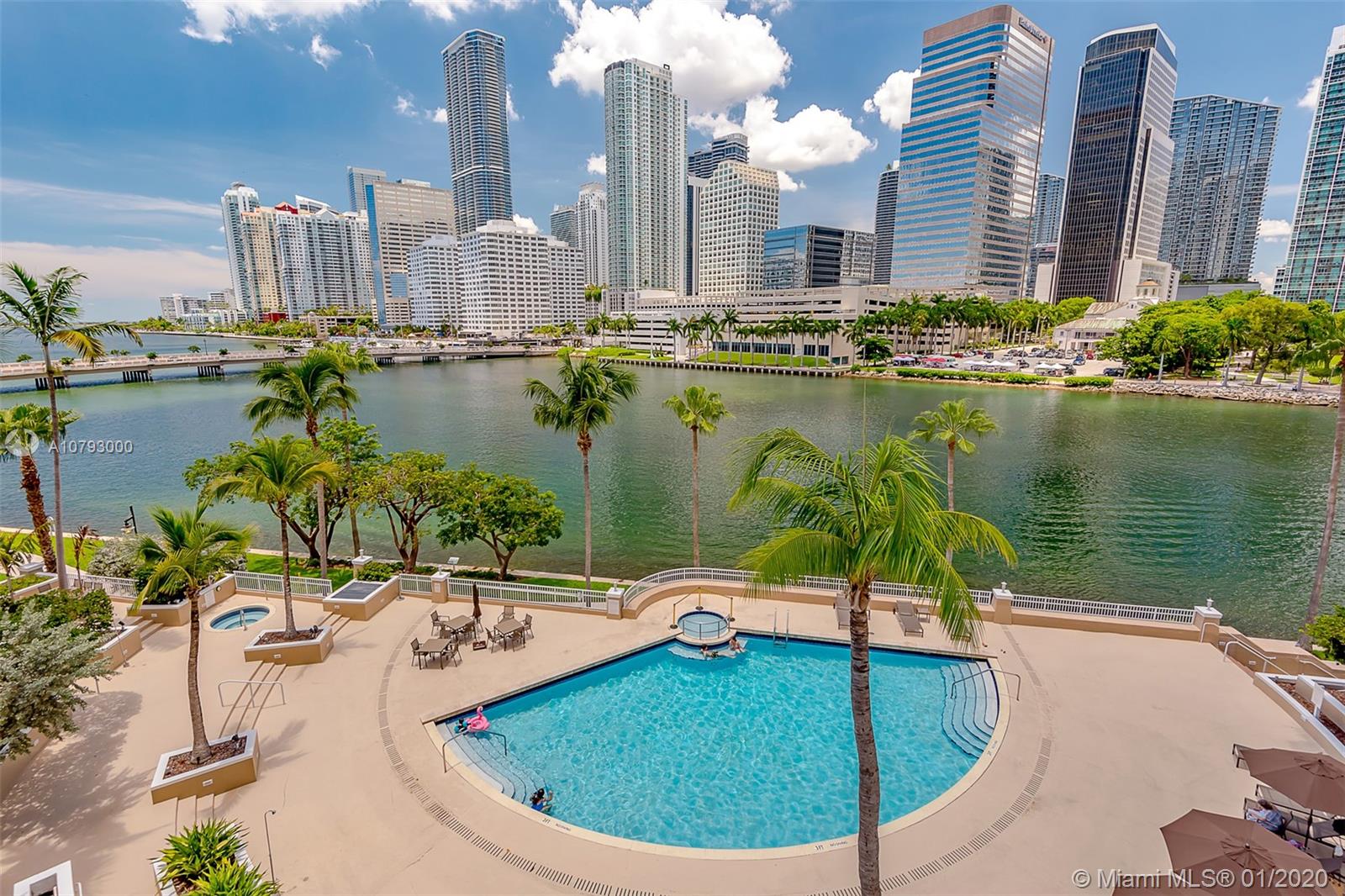 Waterfront! Direct, unobstructed water views. 01 Line is the only 1 bedroom 1.5 bath with direct water views. Brand new appliances, New A/C Unit and brand water heater. This well-maintained unit has been exclusively owner occupied. Enjoy island walks, large heated pool, spa, professionally equipped fitness center, squash and racquetball courts, billiard room, business center, concierge, covered parking, valet, plus complementary valet for guests. Enjoy peaceful island life at Courvoisier Courts on Brickell Key.