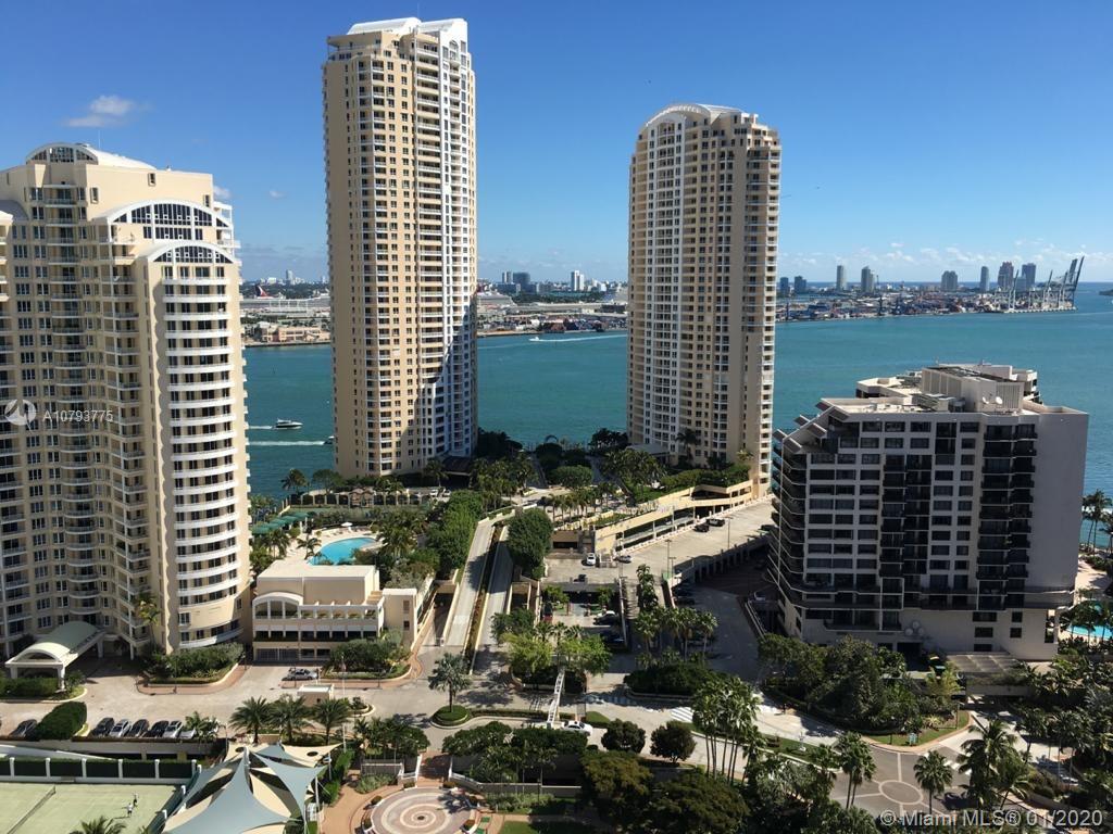 Water view 1,247 sq.ft. 2BD / 2.5BA Penthouse Condo with 9 foot ceiling at Courvoisier Courts Condos on Brickell Key. Remodeled corner unit with covered balcony off the living & the kitchen perfect for entertaining.Water views from the kitchen, living/dining & master bedroom.Baths, kitchen & flooring completely upgraded & updated with taste.Unit comes with 1 assigned parking space.Pet quantity & weight not restricted.Pet friendly building offering dual green roof & dog-park. Amenities include: indoor racquet ball.