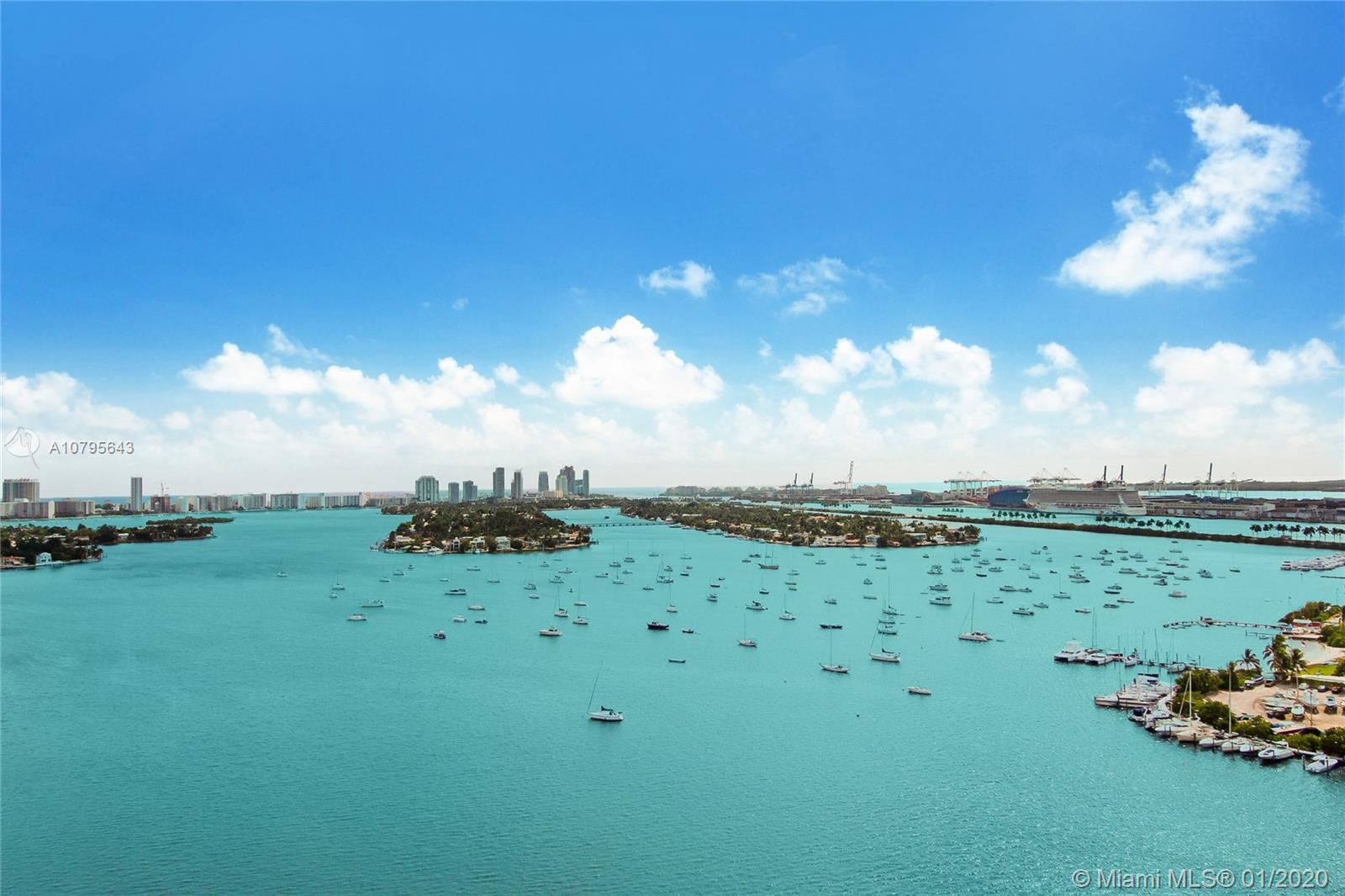 Panoramic views of Biscayne Bay & the Miami skyline from this rarely available penthouse at 1000 Venetian. This full-floor penthouse offers 4,276 sq/ft under A/C, surrounded by over 9 foot tall walls of glass doors leading to an additional 1,713 sq/ft of terrace space that is perfect for entertaining. (sq/ft per architect) The apartment has south, west & north exposures, with all rooms opening directly to the oversized terraces and unobstructed water views in every direction. The apartment was originally designed to be a 5bed/5.5bath but was redesigned into its current layout as a 2bed/3bath. This is a unique opportunity to own a large penthouse with the most amazing views in town, on the red-hot Venetian Islands! Easy to show.