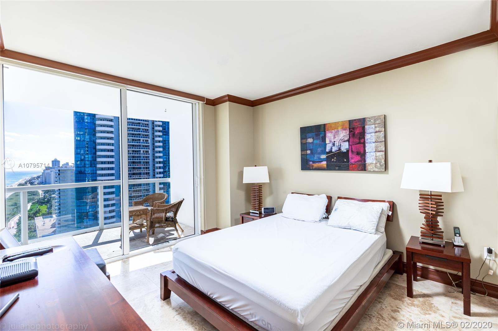 Direct ocean views from every room!!! Enjoy living in this wonderful beachfront residence featuring a wrap-around terrace, marble floors, mural walls & a modern kitchen with top of the line appliances. This condo has the ideal split floor plan offering a huge living/dining area and eat-in kitchen. Building amenities include gym, sauna, steam room, pool, tennis court and beach service with 24-hr valet parking and much more!