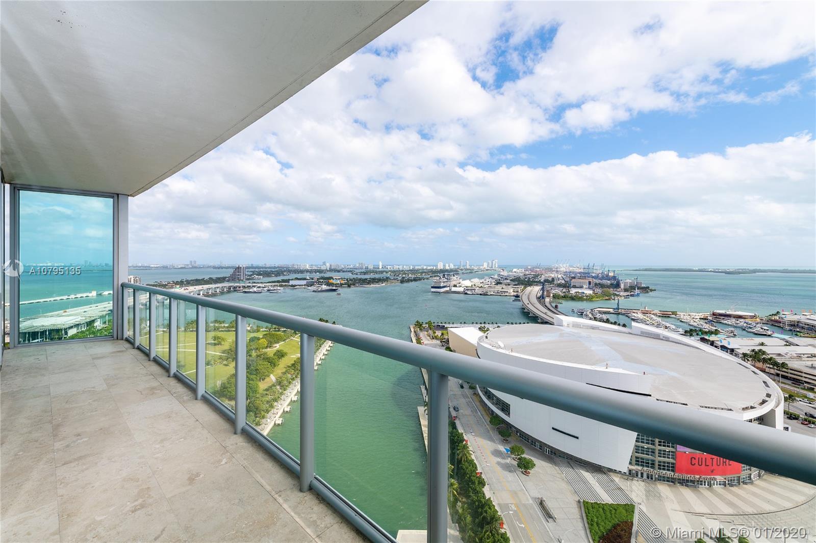 Best line in the building. Unobstructed gorgeous views of Biscayne Bay, Downtown Miami and the beaches. Easy access to highways and new transportation's. Walking distance to the Performing Arts Center and Bayside Marketplace. Directly across from the Perez Art Museum, American Airlines Arena and Park. All amenities including 24hr security, concierge, valet parking for guests, 2 pools, state of the art gym, volleyball, bbq and picnic area, convenience store and much more. Bring any offer ...............