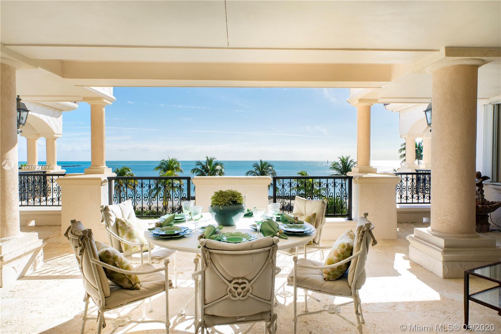 Classically elegant & spacious rarely available "G-1" line featuring the best direct ocean views on Fisher Island. Fabulous 4,590 Sq Ft open floorplan combines living, dining/entertainment areas all seamlessly flowing into 5 terraces merging indoor/outdoor living spaces. Luxurious appointments include; Egyptian Acanthus fireplace, white coral tile & custom rich wood-lined library. Chef's gas kitchen provides top of the line appliances, butler's pantry & breakfast bar. Lavish master suite boasts outdoor jacuzzi on balcony, stunning dual baths, & his/hers walk-in closets. Enjoy world-renowned island amenities; beach club, hotel, spa, gym, golf course, tennis courts, K-8 Fisher Island Day School, 2 marinas, various fine restaurants. Live in one of America's most exclusive & secure zip codes!