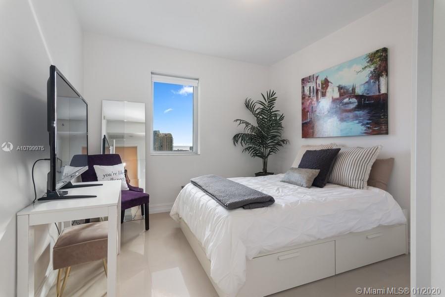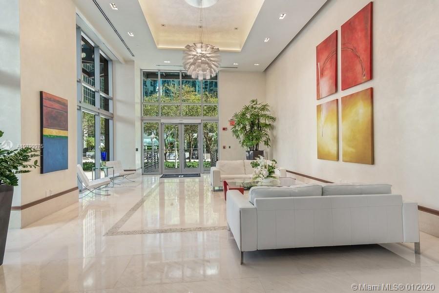 Urban Living at its best! Immaculate 2 bed/2 bath South East corner unit: its location, floor height, 2 standing balconies & floor to ceiling windows allow for marvelous natural light & expansive views of Biscayne Bay from the Port of Miami to the NE mostly enjoyed from the living room, all the way to Coconut Grove to the SE giving the master room an amazing combination of city and water views. Porcelain floors, Open kitchen w/granite counters, Italian cabinetry, stainless steel appliances. Ample closet space w/enlarged closet in master bedroom. Amenities include pool, fitness center, billiard, cigar, massage, yoga & party rooms, virtual golf, business center. This financially very solid building has an unbeatable Brickell location, with the easiest access both for vehicles & pedestrians