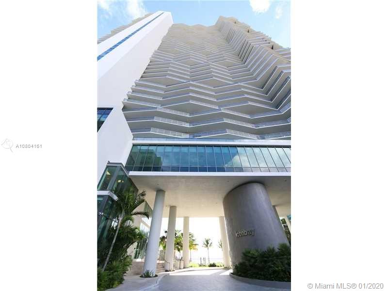 Unobstructed bay views from this 2 BR/2 BA at Icon Bay. Unit features private elevator with foyer, modern and spacious kitchen, and large terrace with breathtaking views of Biscayne Bay. Master bedroom has access to terrace, spacious walk-in closet, and l arge bathroom with double sinks. Unit is delivered with custom designed closets, porcelain floors installed and roller linen shades with blackouts in bedrooms.Amenities include waterfront pool area, clubhouse,spa, gym,tennis courts, theater room,and more.