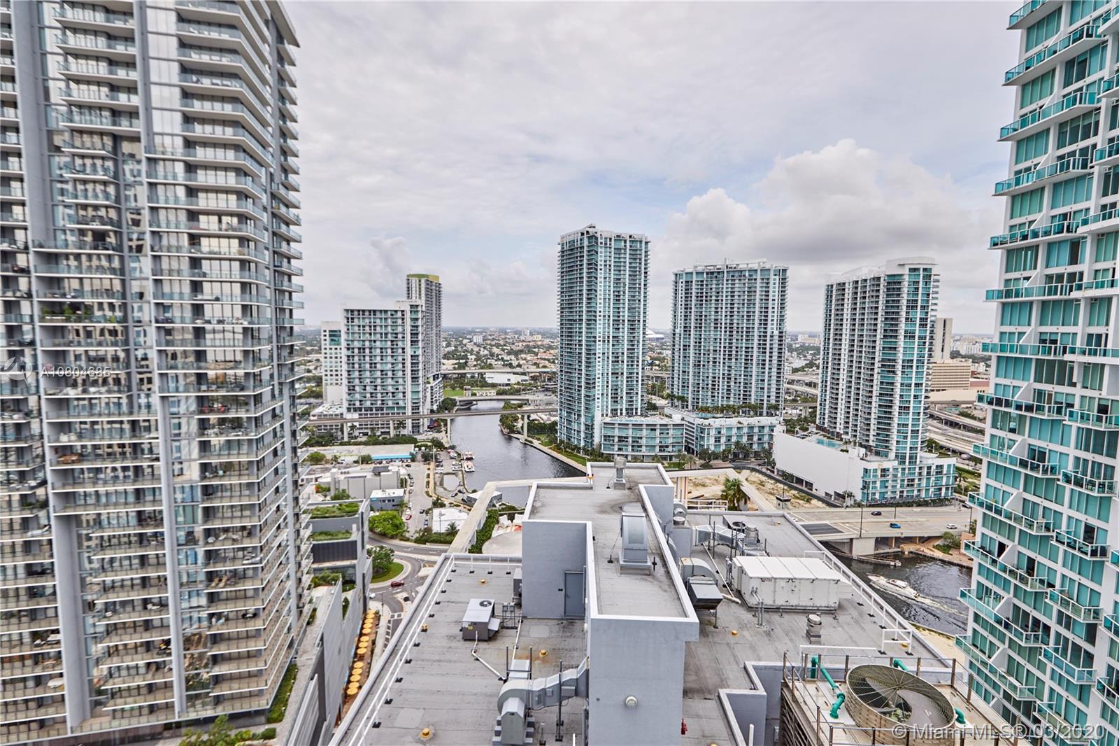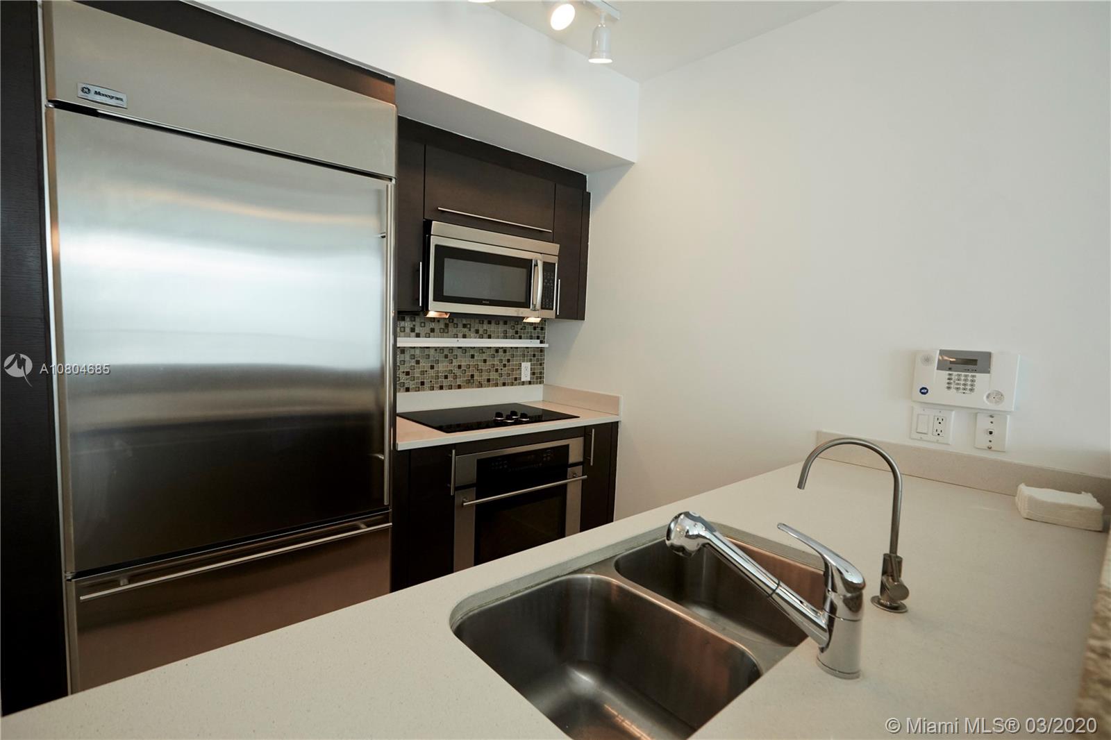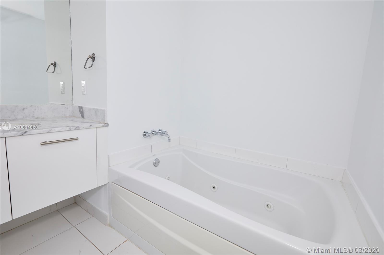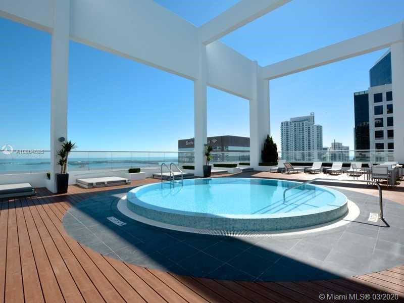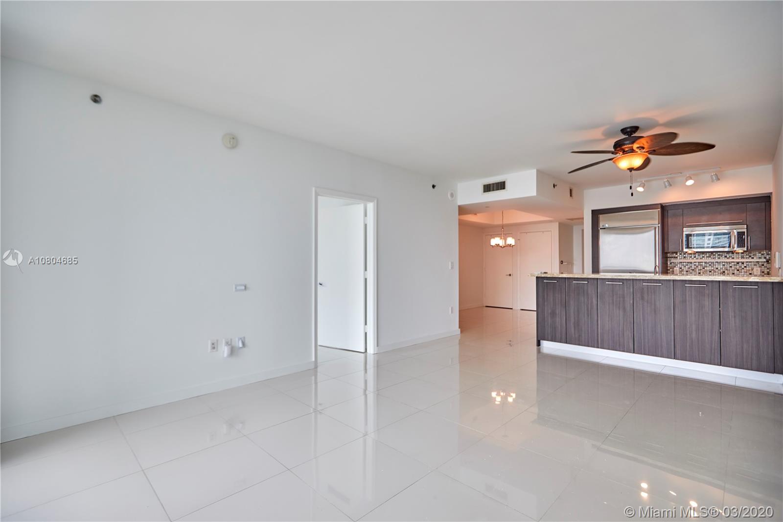 Largest one-bedroom plus den floor plan in the building. Western facing with beautiful unobstructed views of the Miami River and sunsets. Walk-in closet in master. Tiled step-in shower, jetted tub, and dual sinks in large bathroom. Unit upgrades: 5-stage osmosis water filtration system, Nest thermostat, motorized shades in living/bedroom, tiled balcony, upgraded lighting, ceiling fans in living/dining and bedroom, 18x18 white porcelain flooring tile throughout living spaces, tile back-splash behind cook-top, dimmer switches added in dining/kitchen/entry/living/bedroom, NEW dishwasher. The best upgrade is the addition of custom cabinetry and bar height counter-top which expands the kitchen into an eat-at breakfast bar. Unit includes one parking located on level 4 of the 10 story garage.