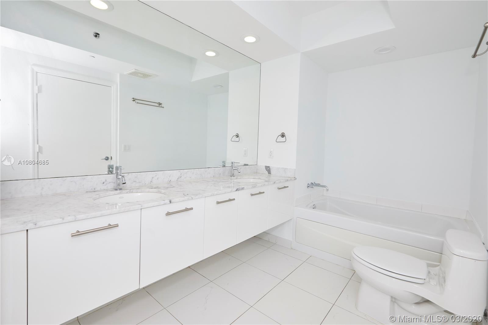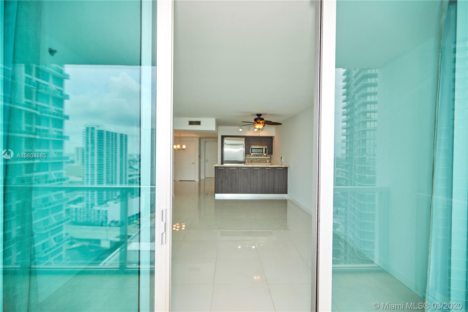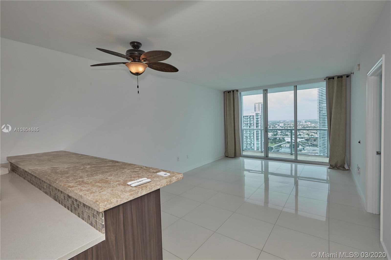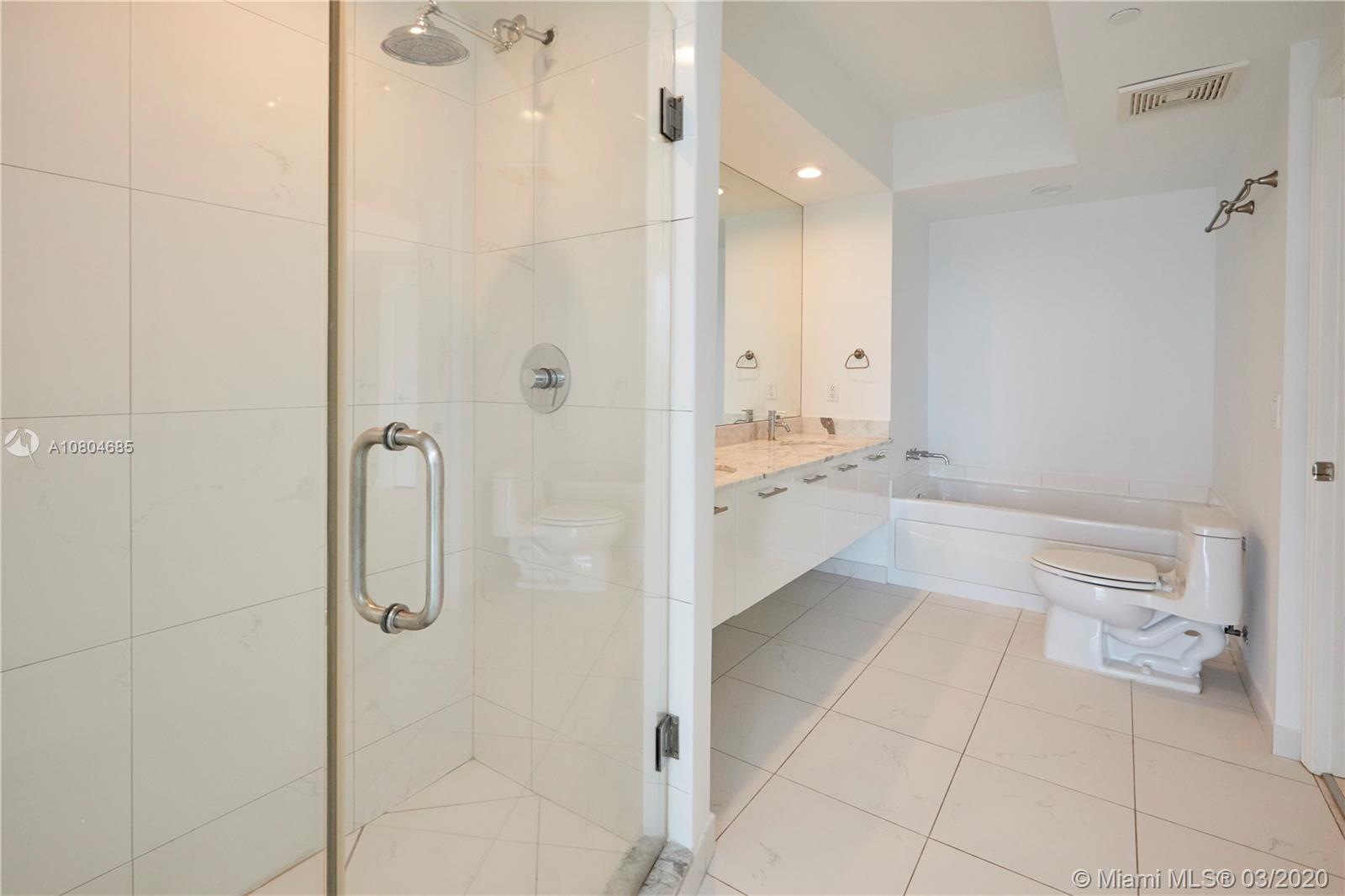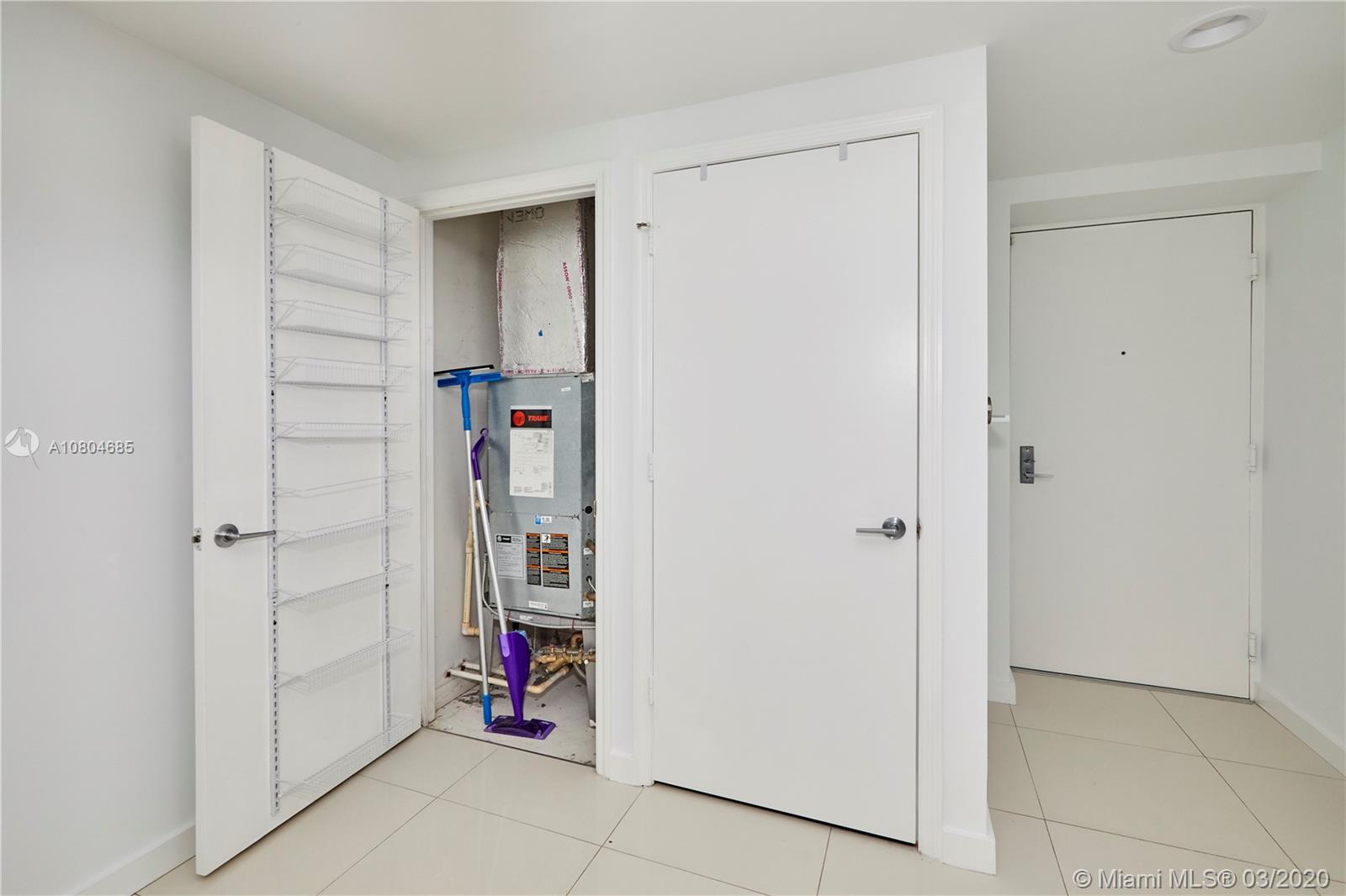Largest one-bedroom plus den floor plan in the building. Western facing with beautiful unobstructed views of the Miami River and sunsets. Walk-in closet in master. Tiled step-in shower, jetted tub, and dual sinks in large bathroom. Unit upgrades: 5-stage osmosis water filtration system, Nest thermostat, motorized shades in living/bedroom, tiled balcony, upgraded lighting, ceiling fans in living/dining and bedroom, 18x18 white porcelain flooring tile throughout living spaces, tile back-splash behind cook-top, dimmer switches added in dining/kitchen/entry/living/bedroom, NEW dishwasher. The best upgrade is the addition of custom cabinetry and bar height counter-top which expands the kitchen into an eat-at breakfast bar. Unit includes one parking located on level 4 of the 10 story garage.