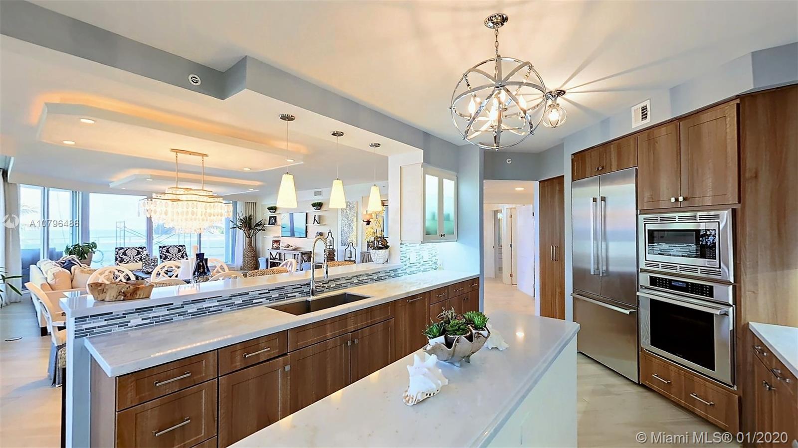 A luxurious and captivating open floor-plan unit that boasts a view of the turquoise waters of Atlantic ocean from the first moment that you step inside this impeccable property. Completely renovated by a top designer, the unit offers high ceilings lots of closet space, marble countertop Thermador appliances, and a new porcelain hardwood floor. Move right into paradise and enjoy the sunrise on your oversized wrap around balcony/ sundeck with the ocean as your backyard and watch cruise ships come in from a long voyage. This unit comes with a large Den that can be used for men's cave, movie theater or a maid's quarters with a laundry room. The building offers a spa, tennis court, concierge, valet parking, bbq grill, tennis courts, and 2 pools. Minutes from airport and close to shopping