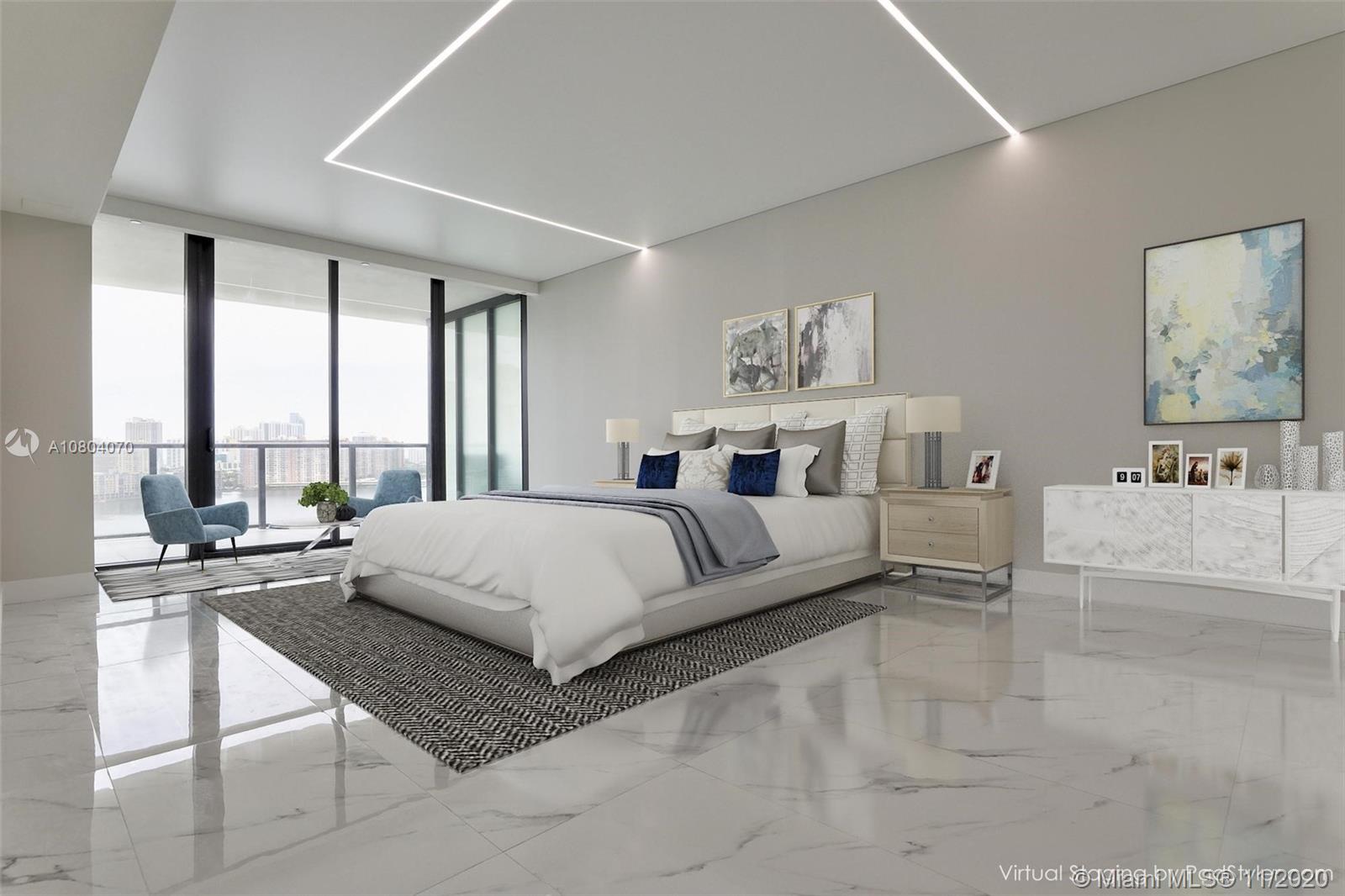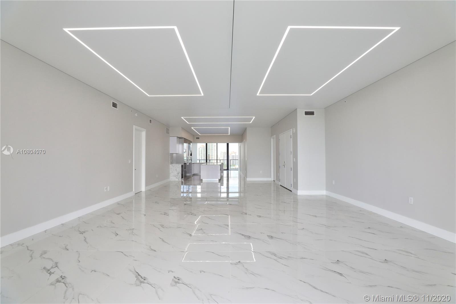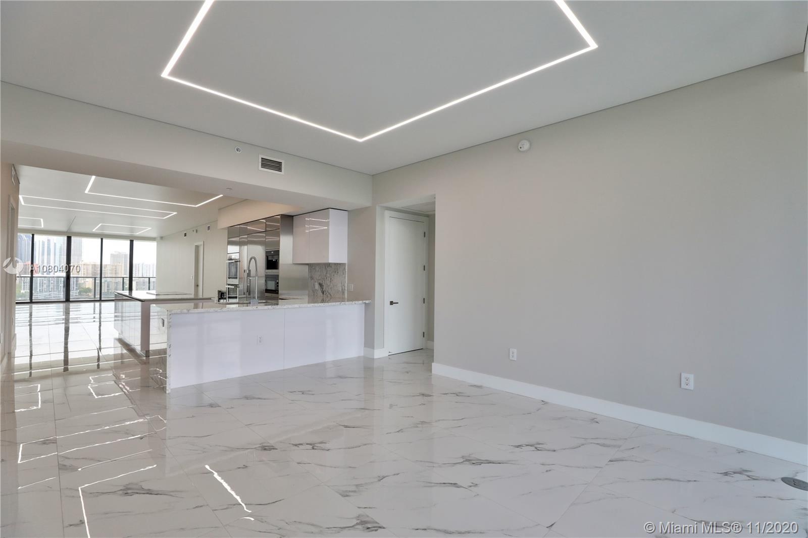 PRIVE is a magnificent complex in an 8 acre private island in Aventura. This brand new+ never lived in unit features a flow-through lay out w/3 bedrooms + den/4,5 baths & breathtaking views to intracoastal/Ocean from every window/ 10' foot floor -to -ceiling glass windows & deep expansive terraces w/ barbecue . White & Grey Italian porcelain floor already installed.High end custom made walk-in closets ,custom designed ceilings & LED lighting. Ready to move in! Private elevator & modern European Kitchen. World class amenities include: Gym/Spa, large pool deck w/ East&West views;2 pools & pool bar service, restaurant/cafe ; entertainments room, cigar room, wine room, lighted tennis courts, Private marina w/ boat slips available, children's playground &game room. Best deal in the building!!