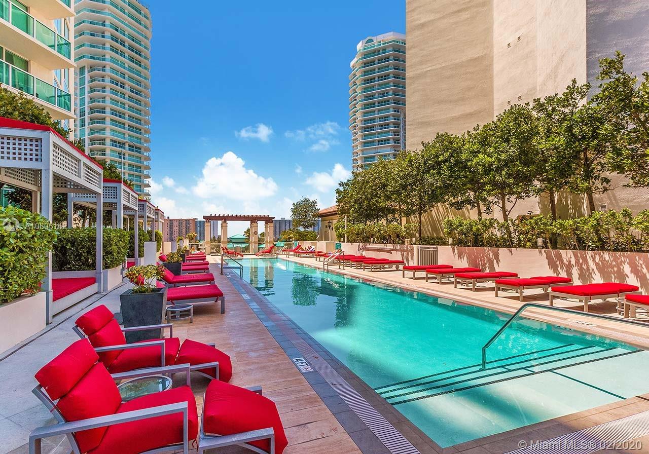 This unit features marble floors, impact glass windows, large balcony, walk in closet, full equipped open kitchen, double refrigerator with gas mechanism, 2 king beds with mattresses, two smart TV on walls. Turnkey ready to move in. Building Amenities include 24 hours concierge, security, valet, infinity pool, cabanas, spa/gym, sauna, club house, transport and access to private beach club on the beach, i mile from Bal Harbour , 3 miles from Aventura Mall, Boutiques, coffee shops, beauty salon, pet shop on ground floor and a new city park across the street.