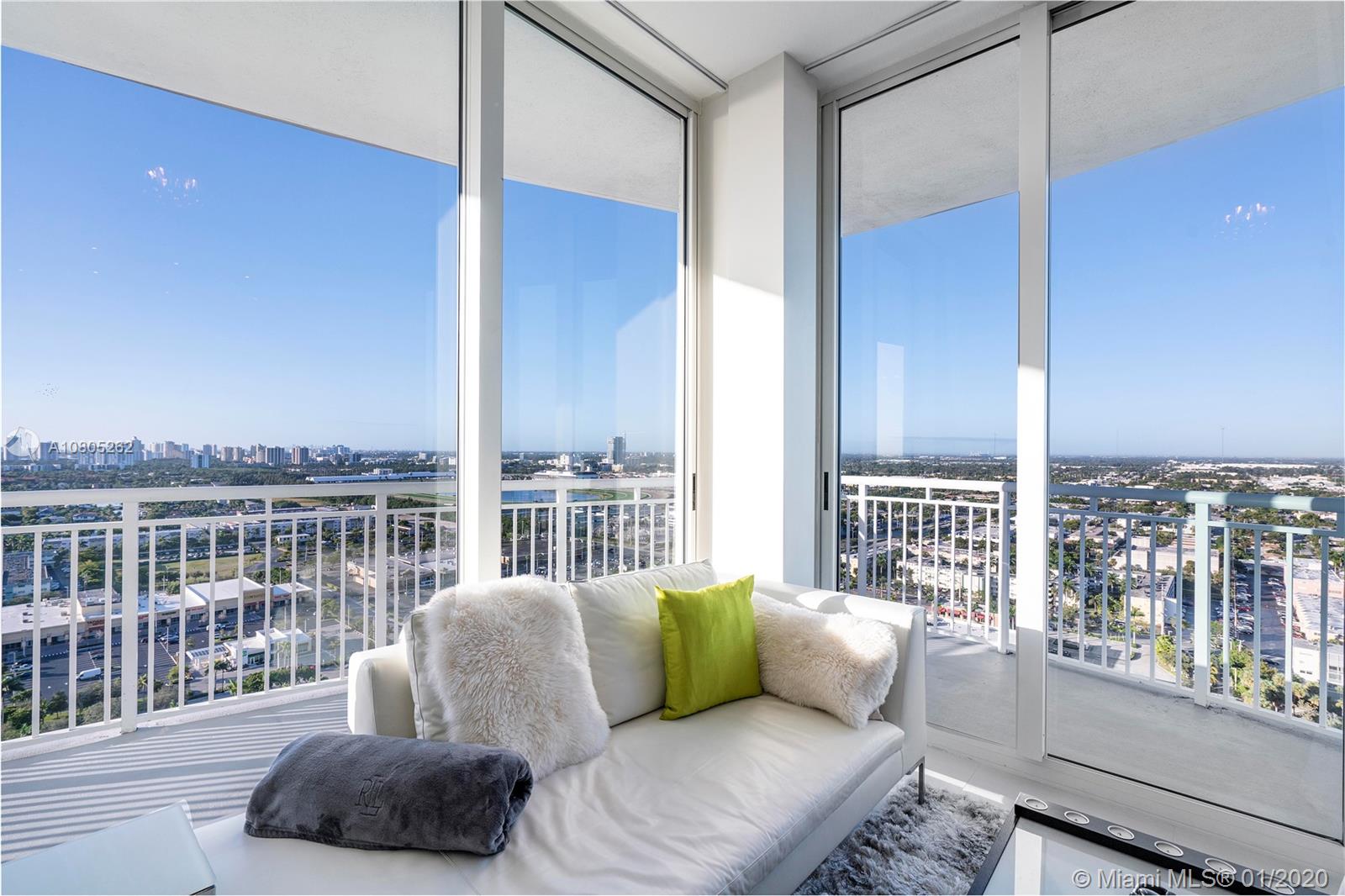 Lower penthouse corner unit, modern designer remodel, 2 bed 2 bath with breathtaking unobstructed panoramic views of ocean, intracoastal waterway, golf course and city skyline. Luxurious finishes include: 10ft ceilings, 24x24 white rectified porcelain tile, roller shades in living area, ripple fold blackouts shades in bedrooms, custom closets with custom glass doors, stainless steel Bosch appliances, Samsung washer/dryer, Nest thermostat, LED lighting throughout, spacious master bathroom with dual vanity, tub and large separate shower. Resort style amenities include: pool, jacuzzi, steam, sauna, gym, tennis court, 24hr security/valet, electric car charging station, etc. Prime location walking distance to beaches, shops, restaurants, Starbucks, Gulfstream casino and much more...