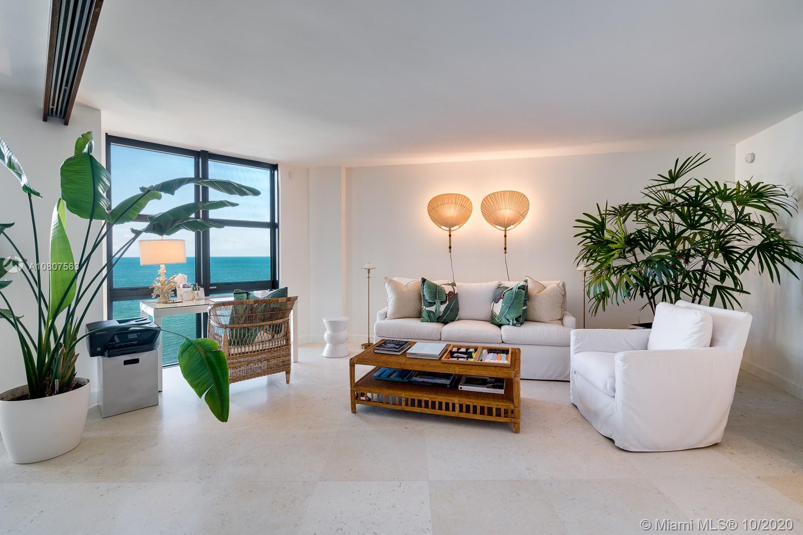 Location, Location, Location! Newly and beautifully remodeled 2/2 split plan with unobstructed ocean views from all rooms. Oceanfront oasis with large covered terrace, custom carpentry, eat-in kitchen and natural stone floors throughout. New floor to ceiling impact windows. Would suit the most discriminate. Upper garage parking. Easy to show.