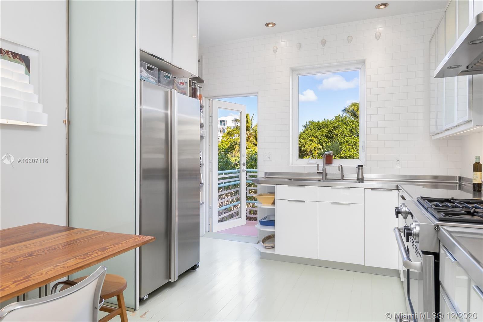 This is what dreams are made of. Exactly what your buyers have in mind when they picture an Art Deco pied-a-terre. This immaculate 2/2 ,Front-facing corner-to-corner-to-corner beauty feels like a Treehouse. Renovated w/ an impeccable eye for simplicity and taste,“chef’s kitchen” with stainless countertops and appl. Restored H/W floors, and highlights include an Art Deco fireplace, two modern bathrooms, Three walls of impact windows flood the space w/ light throughout the day. Building has a shared W/D plus W/D hook-up in the unit. Old-growth garden w/ fountain and communal grill tops this period gem off. Only a couple of blocks to walk to Publix, or Whole Foods, and an 8-minute walk to the beach, Quiet neighborhood that’s close to everything. Don't let this one slip through your fingers!