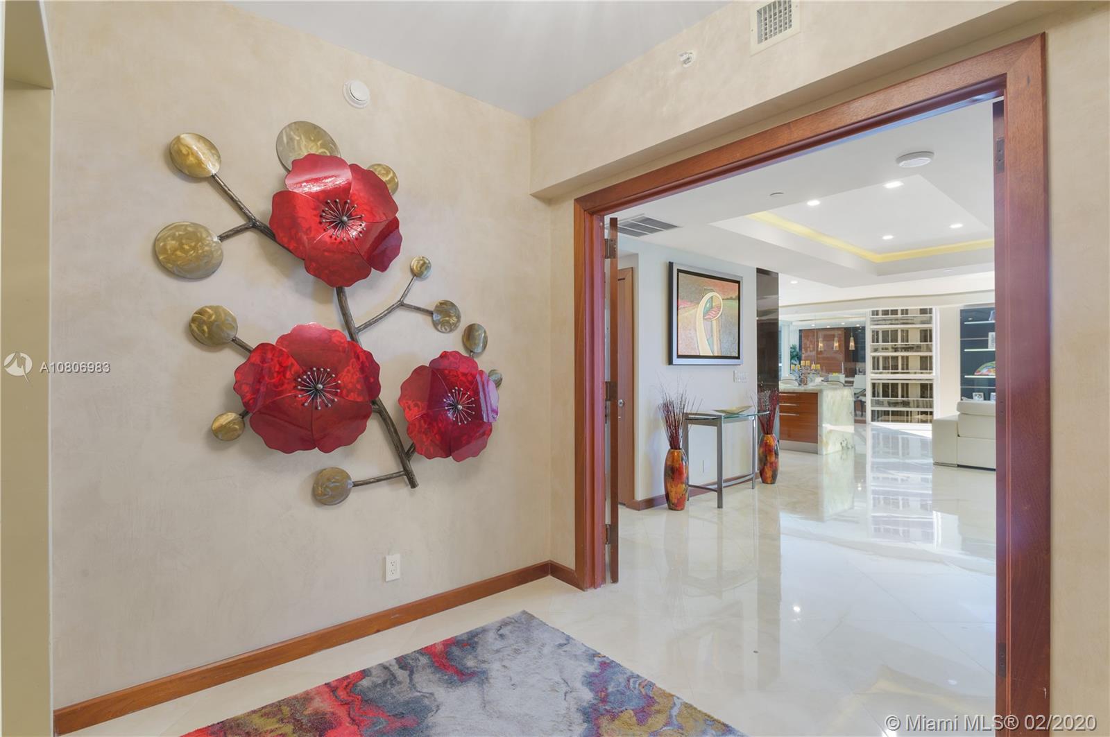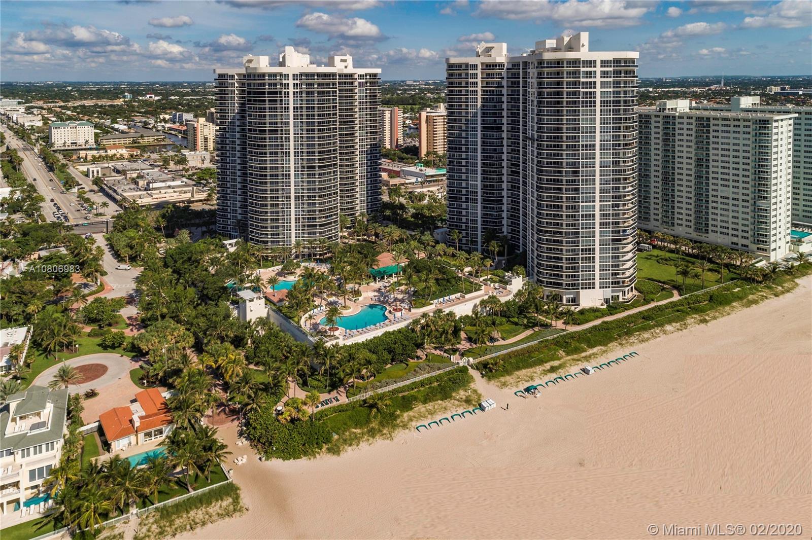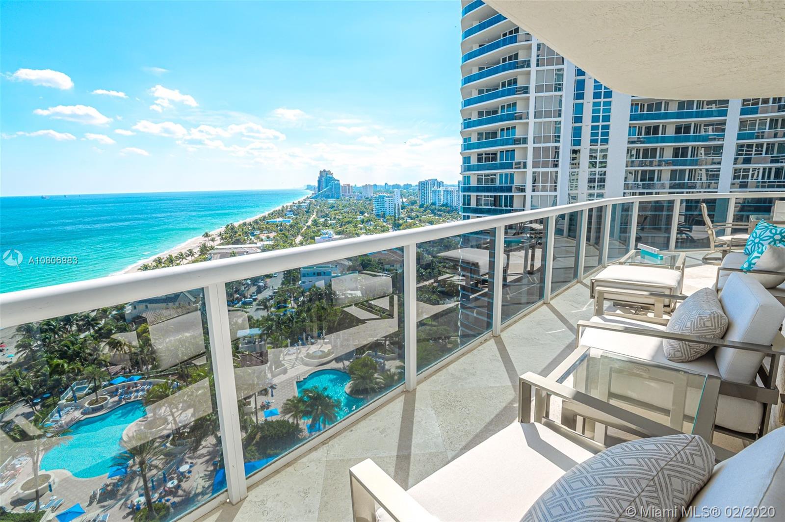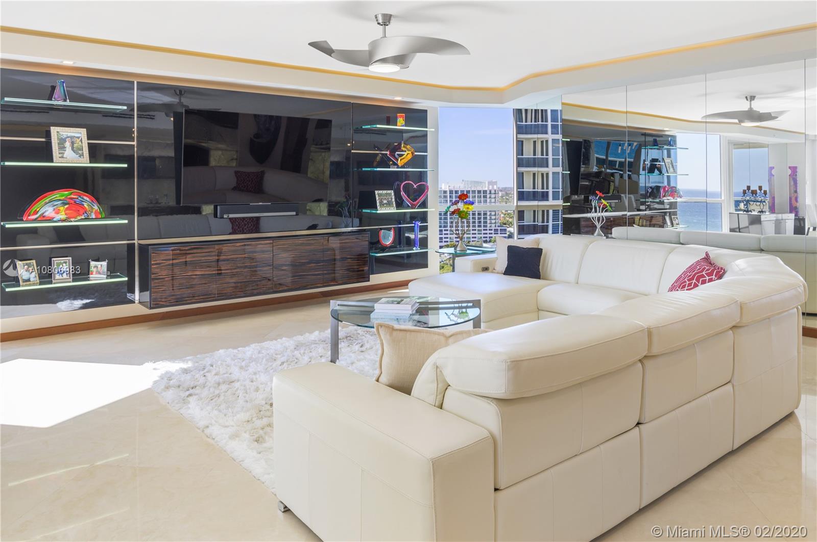 Step off private elevator into gleaming, chic & sophisticated 3BR/3BA 2600SF rarely available 08 flow-through residence. New expansive impact windows perfectly frame glorious ocean view to east & city west. Fully upgraded w/impeccable materials & vision, showcasing 24x24 travertine floors, backlit soffits, Italkraft cabinetry, floating ceiling & Wetbar w/ULine bev fridge & wine cooler. Chefs kitchen w/underlit 12' quartzite island, high-end appliances & designer touches thruout. Master suite has sweeping ocean views, custom closets, speaker system & luxurious bath w/Toto toilets, big shower, multiple heads, and Keuco vanity mirrors w/storage & lights. Upscale, one-of-a-kind masterpiece in a bldg that sits on 10 acres of beachfront land.Resort-style amenities: valet/tennis/gym/pool/cafe