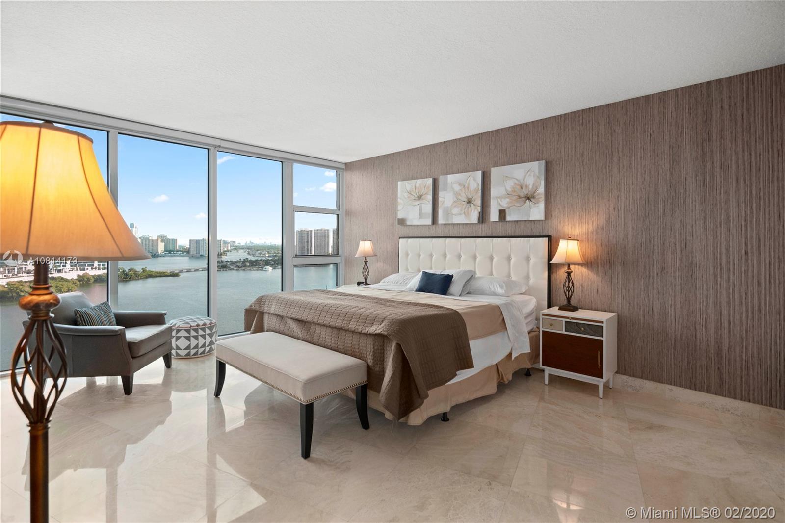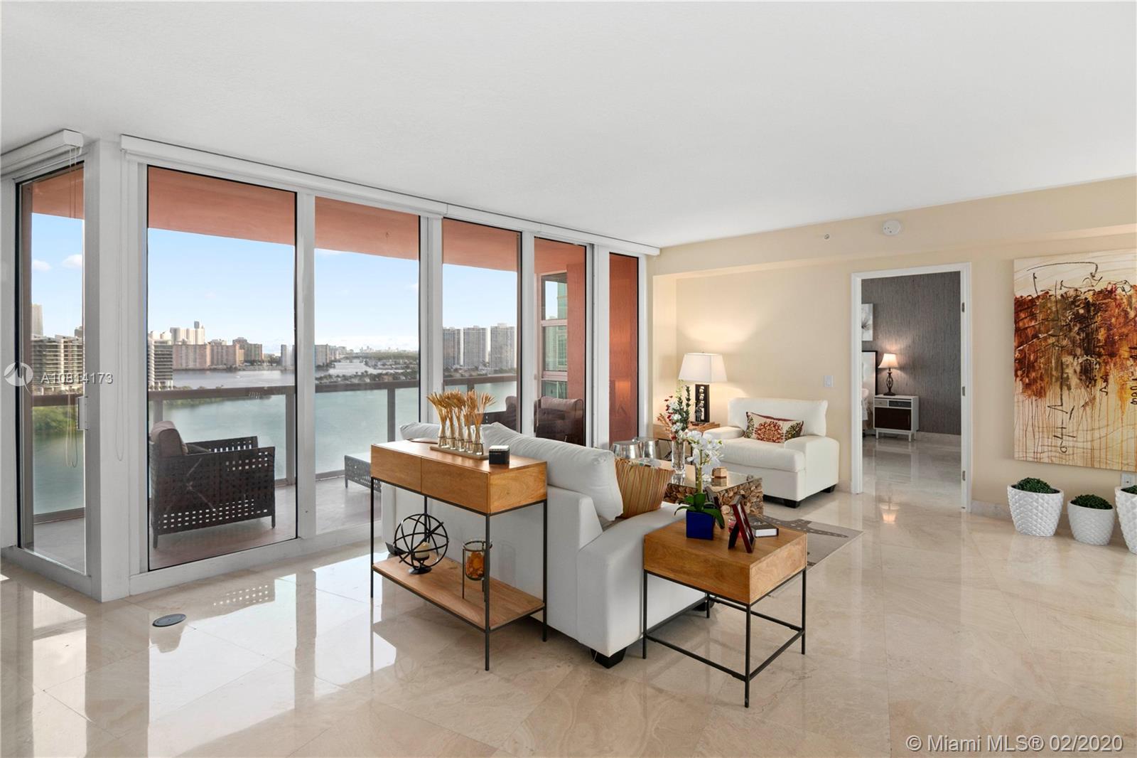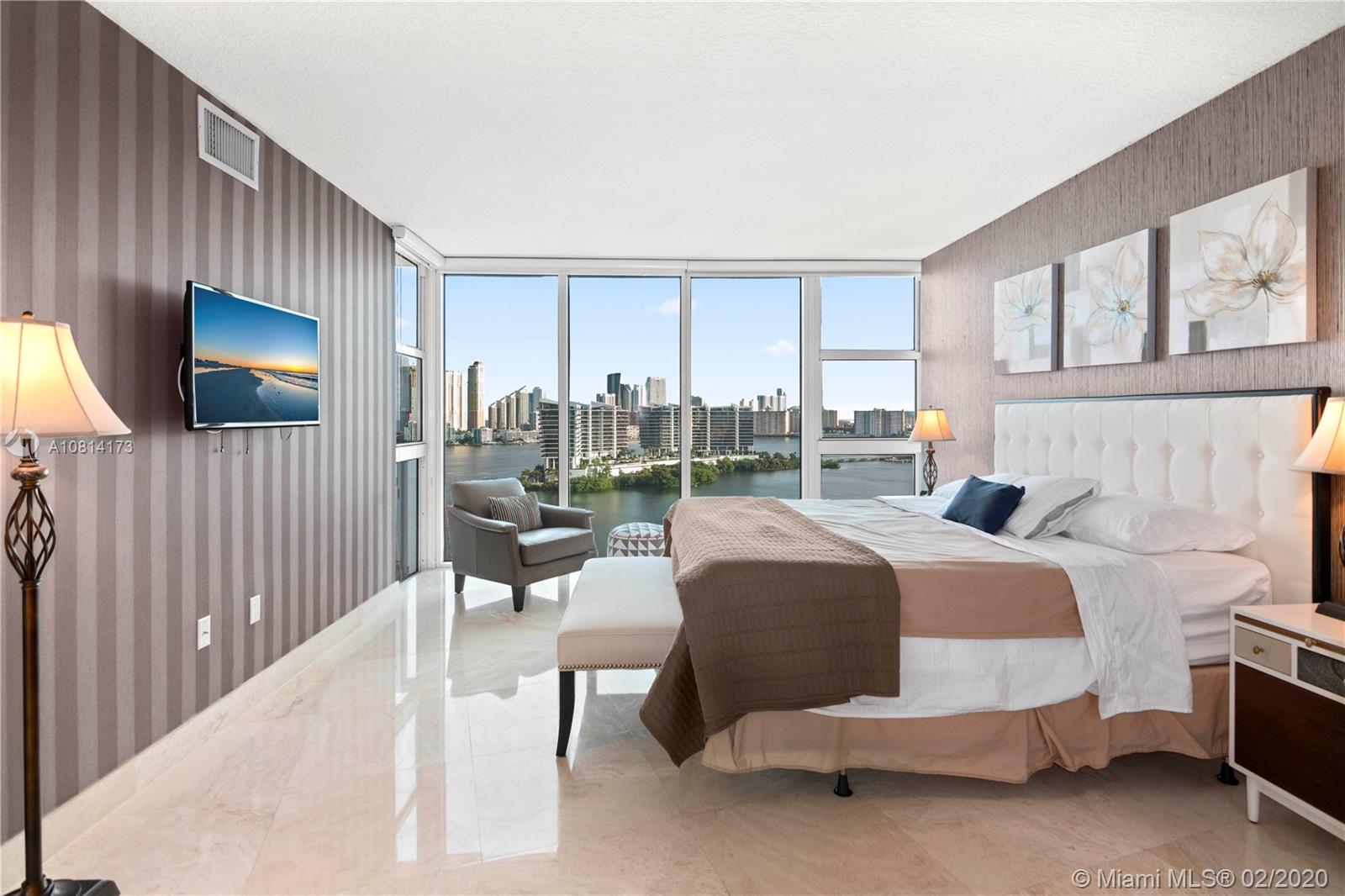 BEST PRICED 3 Bedroom unit in high floor, in the building! Beautiful 3/2/1 + DEN in mint condition. Flow through floor plan with bay and city views, offered Turn-Key with high-end furniture included. Gourmet kitchen with built-in oven and breakfast countertop. Formal dining, DEN and living room. Powder room and laundry. Master bedroom with walk in closet. Master bathroom with 2 sinks and shower separated from the tub. Hurricane windows and hurricane sliding doors. Semi private elevators. 1 assigned parking spot. Building offers: Valet Parking, Fitness center, Social & Card Room, Kids Room, Library, pool and jacuzzi, tennis and squash fields. Boatdock and Marina with services.