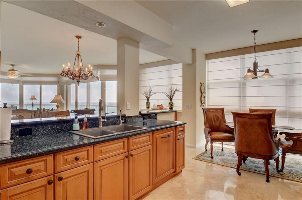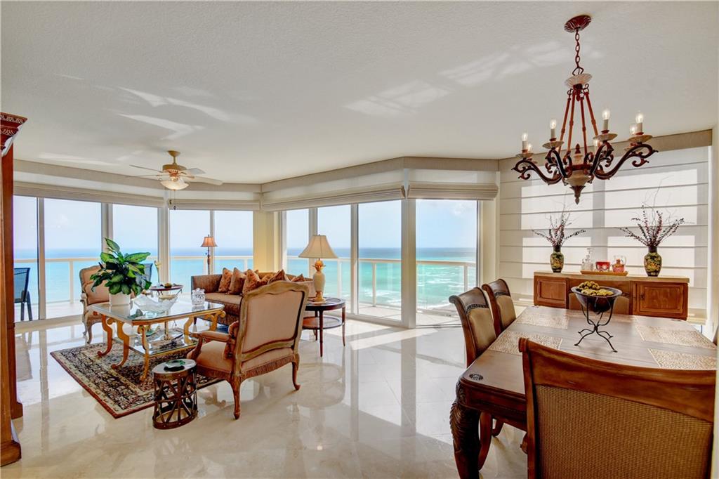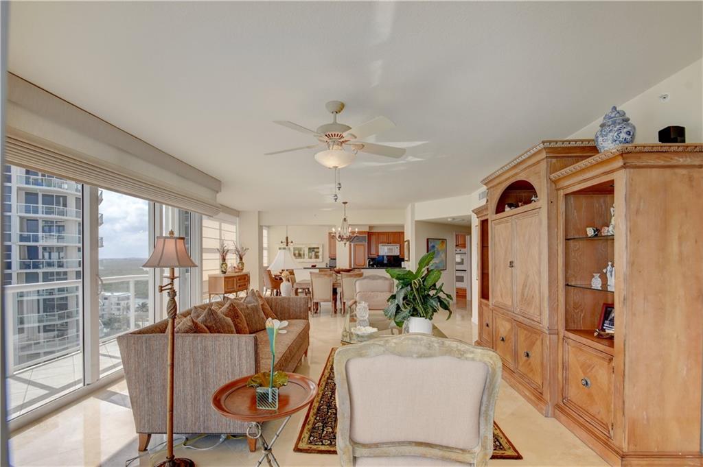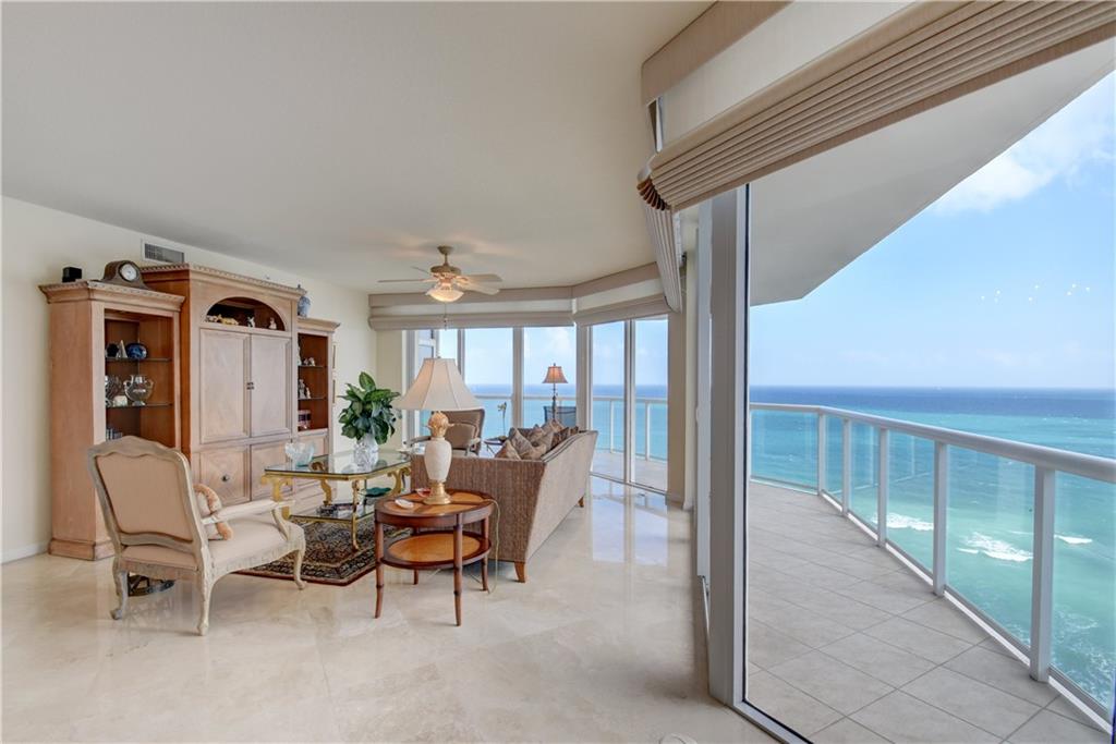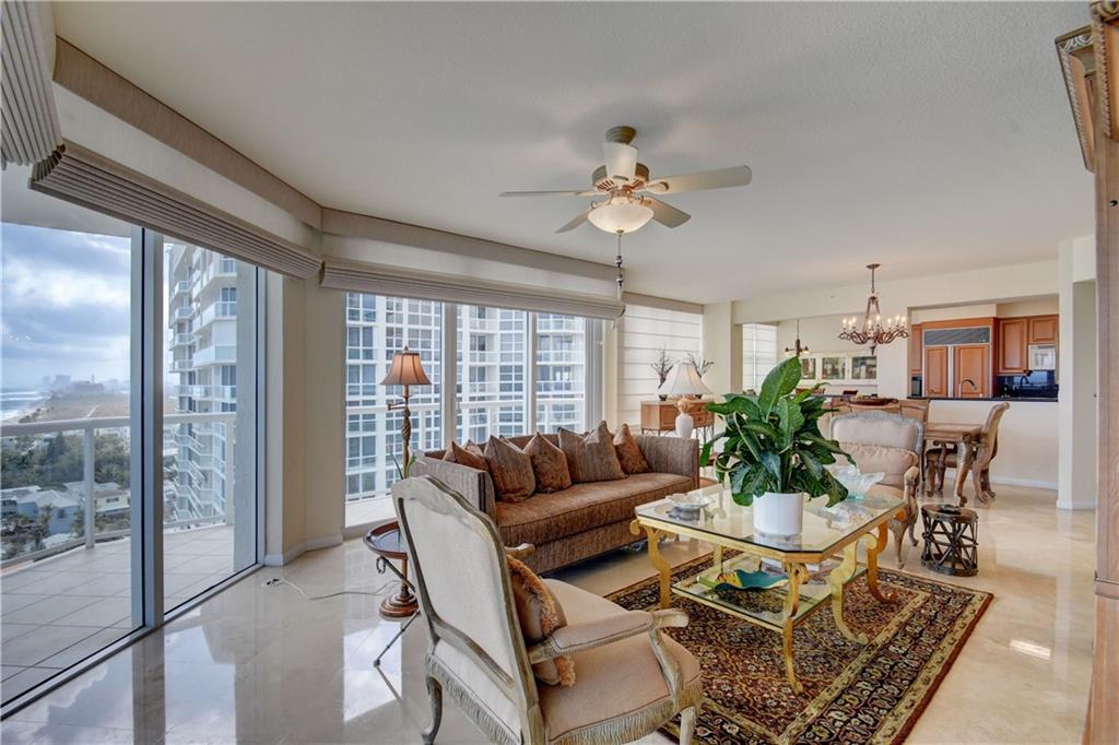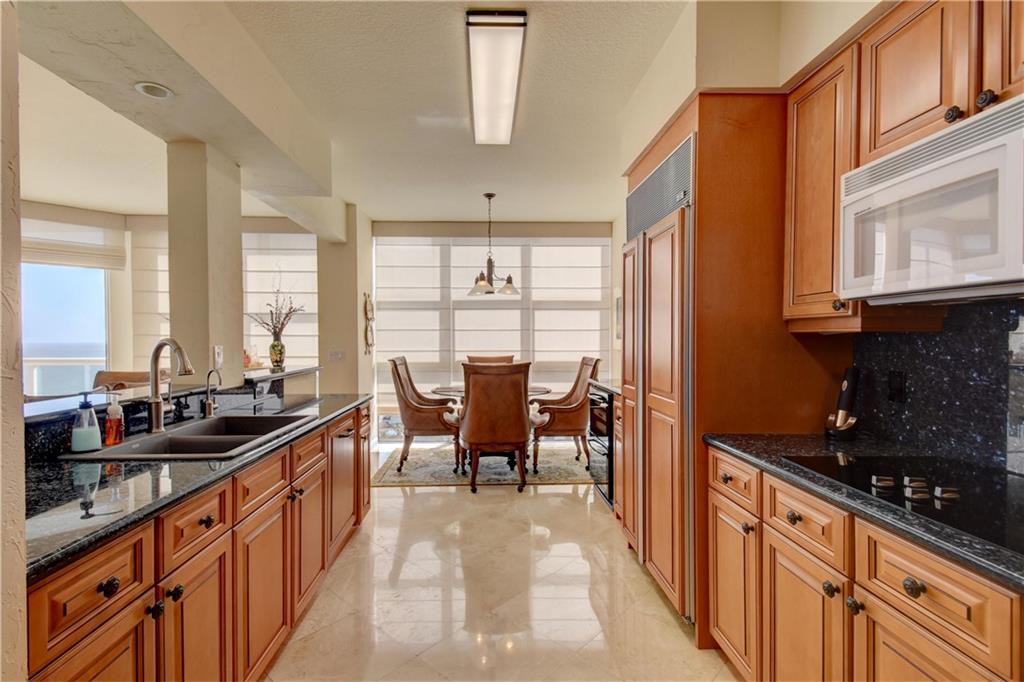 TWO PARKING SPOTS INCLUDED! Wow...that's what you'll say when you step off of the semi-private elevator into this gorgeous 14th floor unit. The ocean views fill the rooms with natural light. This 3 bed/3.5 bath + office apartment features marble and wood flooring, impact windows and tastefully updated kitchen and baths. The kitchen has ample storage, Subzero & Bosch appliances and a wine cooler. It opens up to the living room and dining area so you can enjoy the view and be part of the conversation. The master bedroom has a big walk-in and two other closets for him and her. And you'll find floor to ceiling built in cabinets in the office.You'll find electric shades in the living and master bedroom. Original owner. Impeccably maintained. Move in ready. Furniture negotiable.