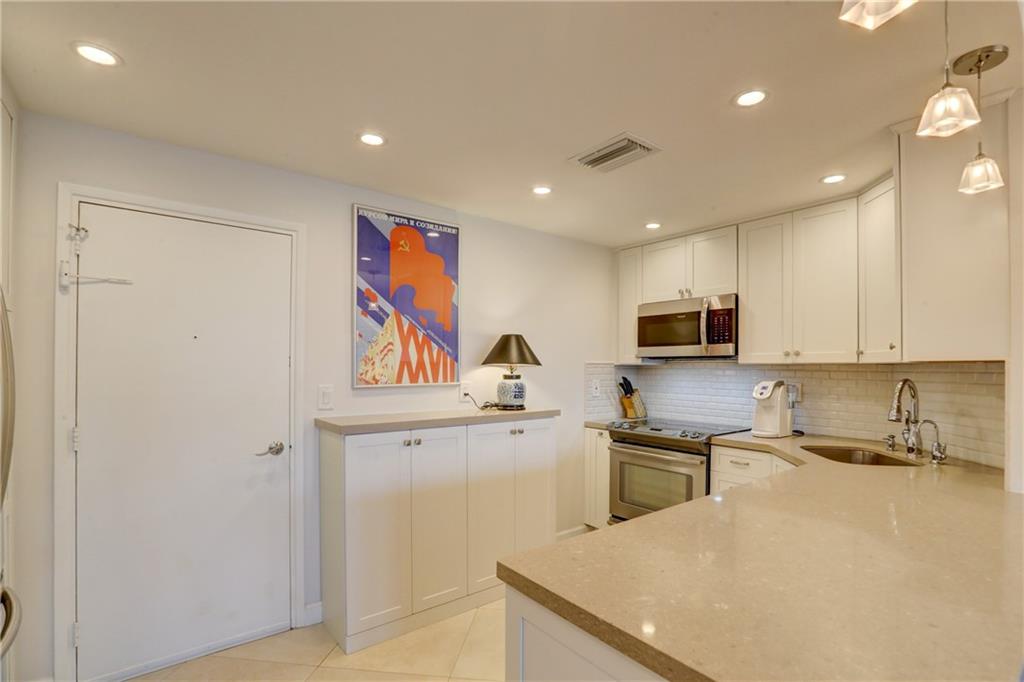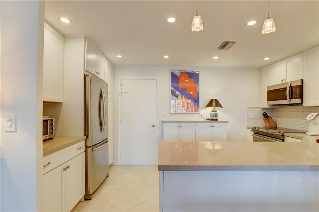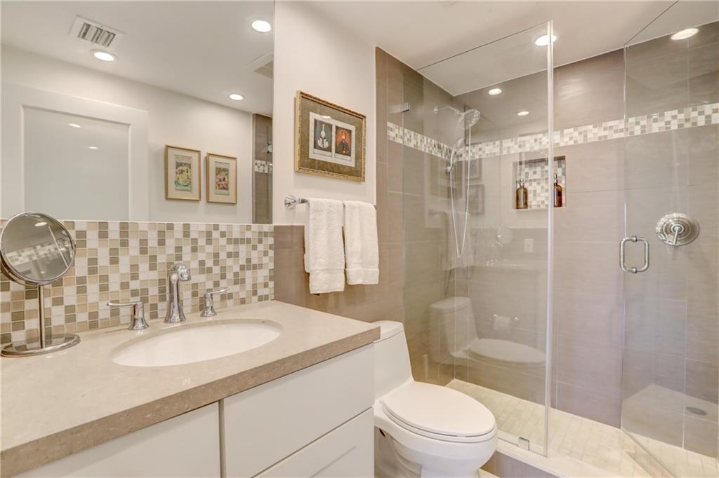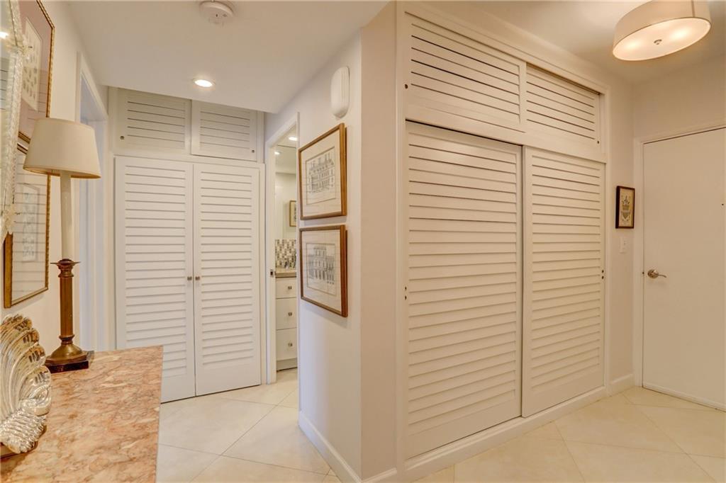 This stunning, model condition, ocean facing, hi-floor apartment has been appointed with the most discriminating of tastes. It’s been thoughtfully designed in a neutral palette from its high-end Kraft-made cabinetry, to sleek modern Italian 30” tile floor running throughout. The kitchen backsplash lined in subway tile frames the Frigidaire Gallery collection of appliances and a full-sized Samsung French drawer refrigerator. A GE water filtration system keeps your water fresh and clean tasting. This sky retreat offers a spa like master bath with frame-less walk-in shower and European tiled accent walls. Its hurricane impact windows are treated with custom shades. This apartment includes a Bosch Washer/Dryer and Eco Smart tank-less water heater, rare features in few units in the building.