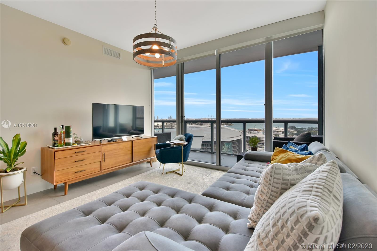 Unit is now Vacant and is being freshly painted and cabinets are being repaired. Will show beautifully when work is complete. 2 bedroom/2 bathroom layout with foyer entry and spacious living areas. The unit has designer porcelain tile floors throughout and is in great condition. Marina Blue is a full-service luxury building with 24/7 concierge and security, valet parking for guests, on-site management, 2 large heated pools, putting green, sand volleyball court, state-of-the-art fitness center, and art-filled common areas. Great walkable area in the heart of downtown, just steps from Perez Art Museum Miami, Frost Museum of Science, Adrienne Arsht Center for the Performing arts, American Airlines Arena, and much more.