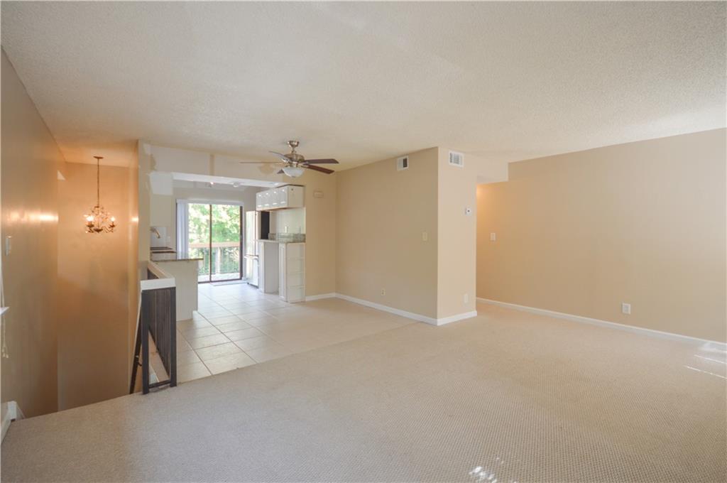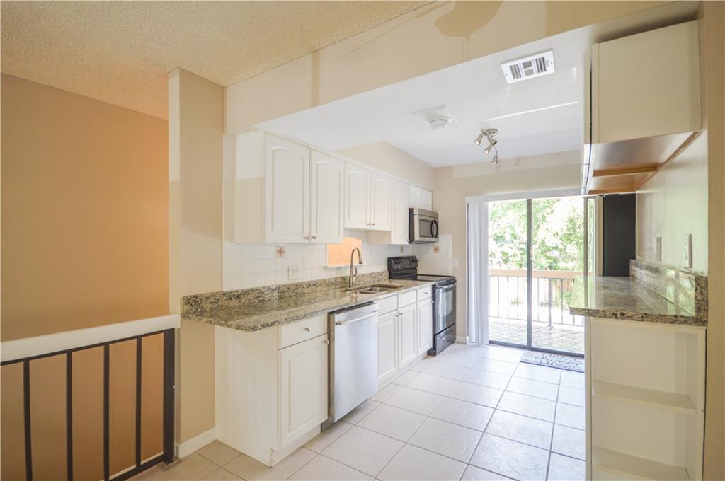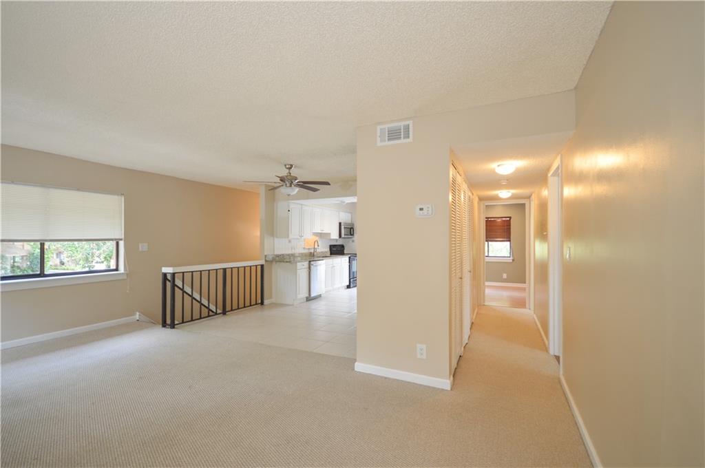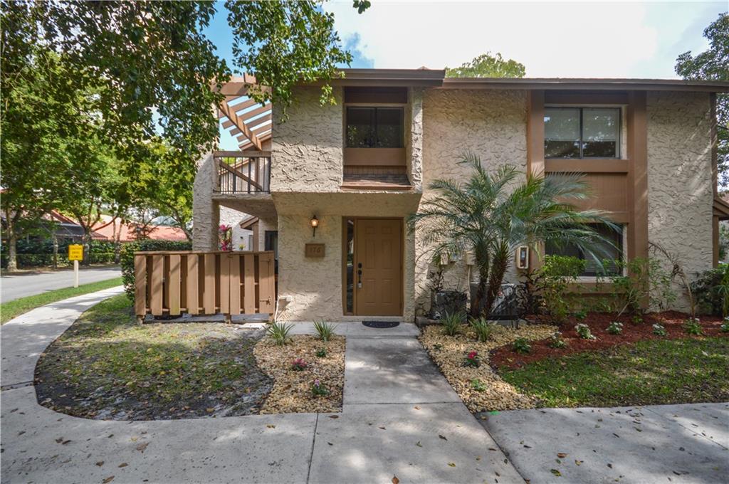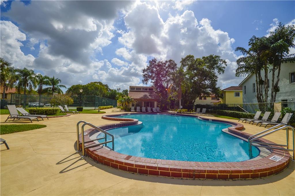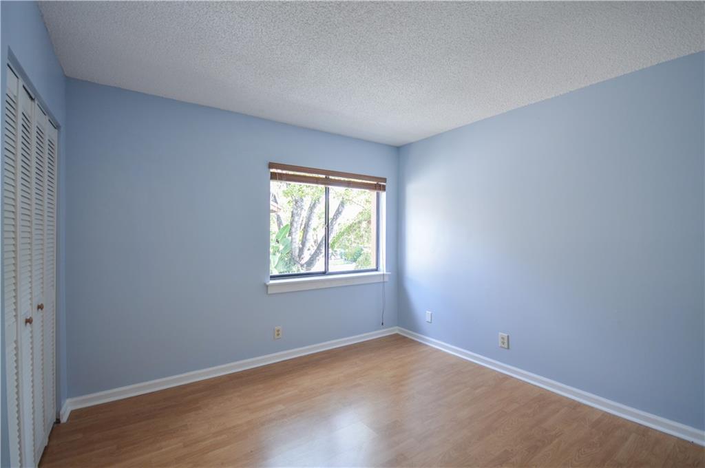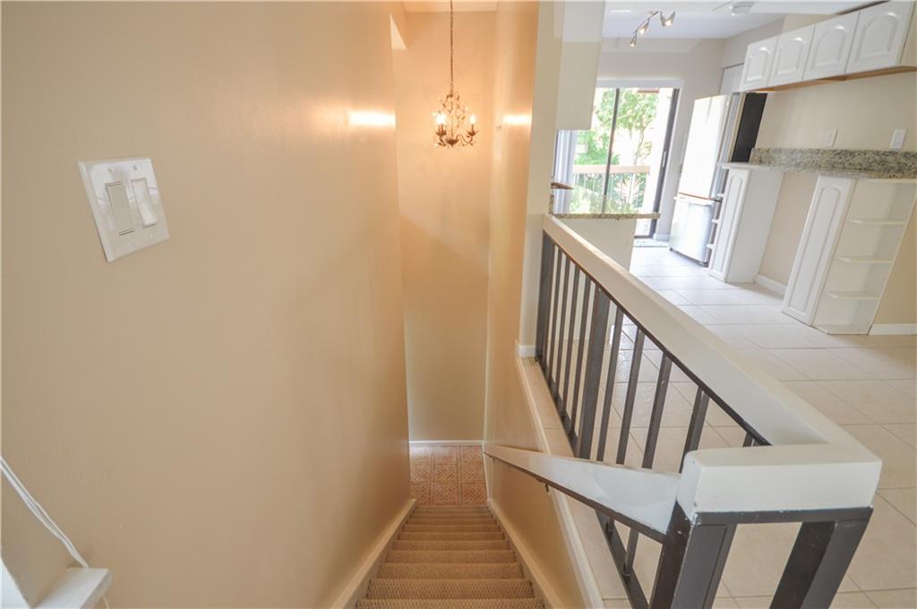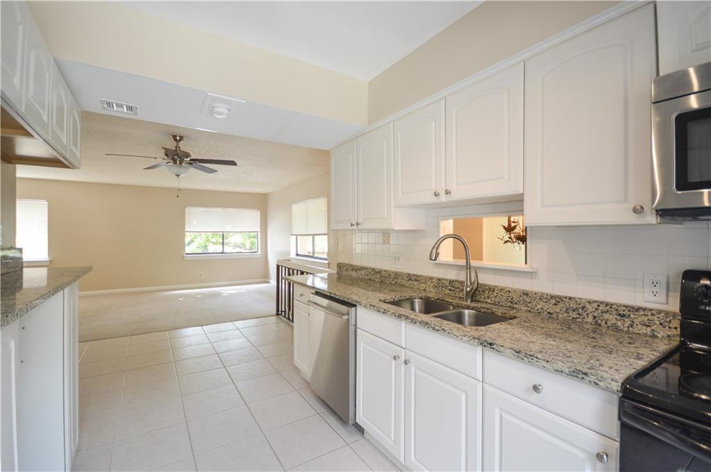 Private, top floor corner unit townhome with tons of light and garden/lake view. Kitchen has white cabinets, granite counter tops, ss appliances and tile floors. Tastefully remodeled bathrooms. New AC. Wood floors in the bedrooms and neutral carpet in the living area. Window treatments throughout. Open balcony with coveted, large walk-in storage closet only available in 2nd floor units. Front door opens onto a shady, tree-lined, grassy play area. Walk to pool/tennis courts. Zoned for desirable schools - A rated Tropical Elementary, and B rated Seminole Middle School.