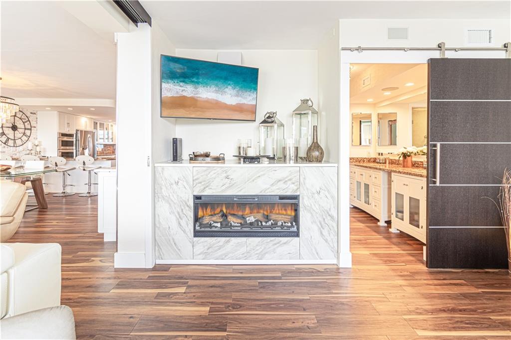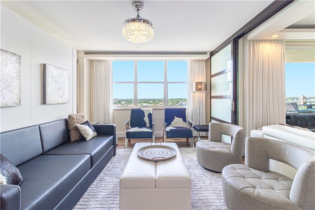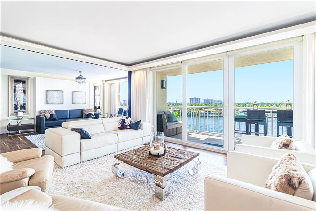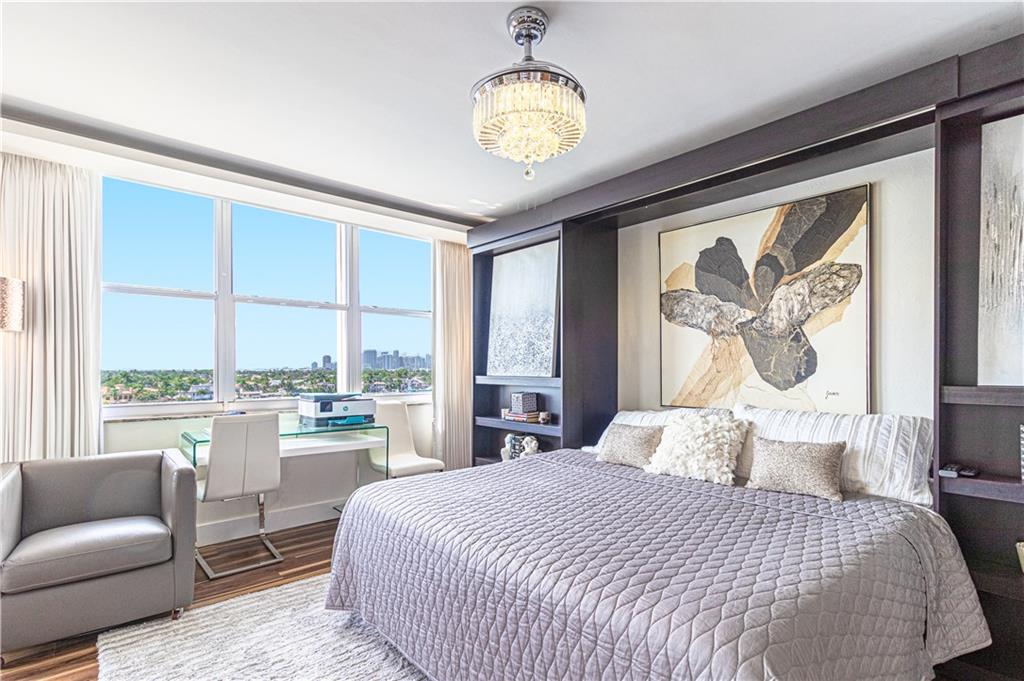 An Amazing redesign, turning this 3 bedroom 3 bathroom unit, into a versatile floor plan that opens living space for entertaining, or transforming back to its original plan with ease, through custom sliding glass walls that provide a panoramic view of the Intracoastal. Completely redone! Everything feels brand new, from the kitchen cabinetry, appliances, custom bar, all bathrooms, flooring throughout, lighting, sound system, fire places, accent walls, built ins, bar with wine cooler and ice maker, window treatments and much more. Building amenities include club room, billiard room, kitchen facilities, fitness center, heated pool, saunas, BBQ grills, & roof top sun deck. Wide Water views of the Intracoastal, ocean and downtown Fort Lauderdale. Walk to the beach!