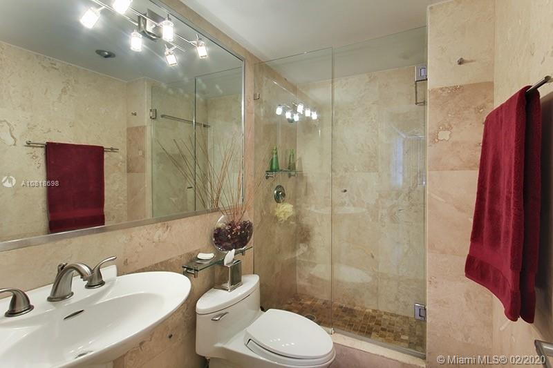 Elegant Miami Beach 2/2 condo with contemporary upgrades in a tropical resort style building. Gorgeous water views from every window and the desirable 12th floor balcony. Great vacation home or income property blocks away from the beach. Upgrades include modern open kitchen with stainless steel appliances, oversized marble tile flooring throughout and designer fixtures in the bathrooms. Building amenities include large pool/hot tub, sun tanning deck, fitness center, valet parking, community social room, lobby with 24-7 service and security, floating dock for water sports, laundry room in every floor, bicycle storage space and more. Great Miami Beach lifestyle within walking distance to restaurants, shops, markets and the beach. 1 assigned parking space plus 1 guest parking. Stylish condo.