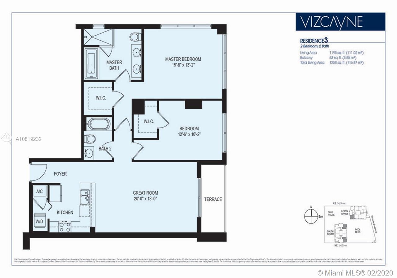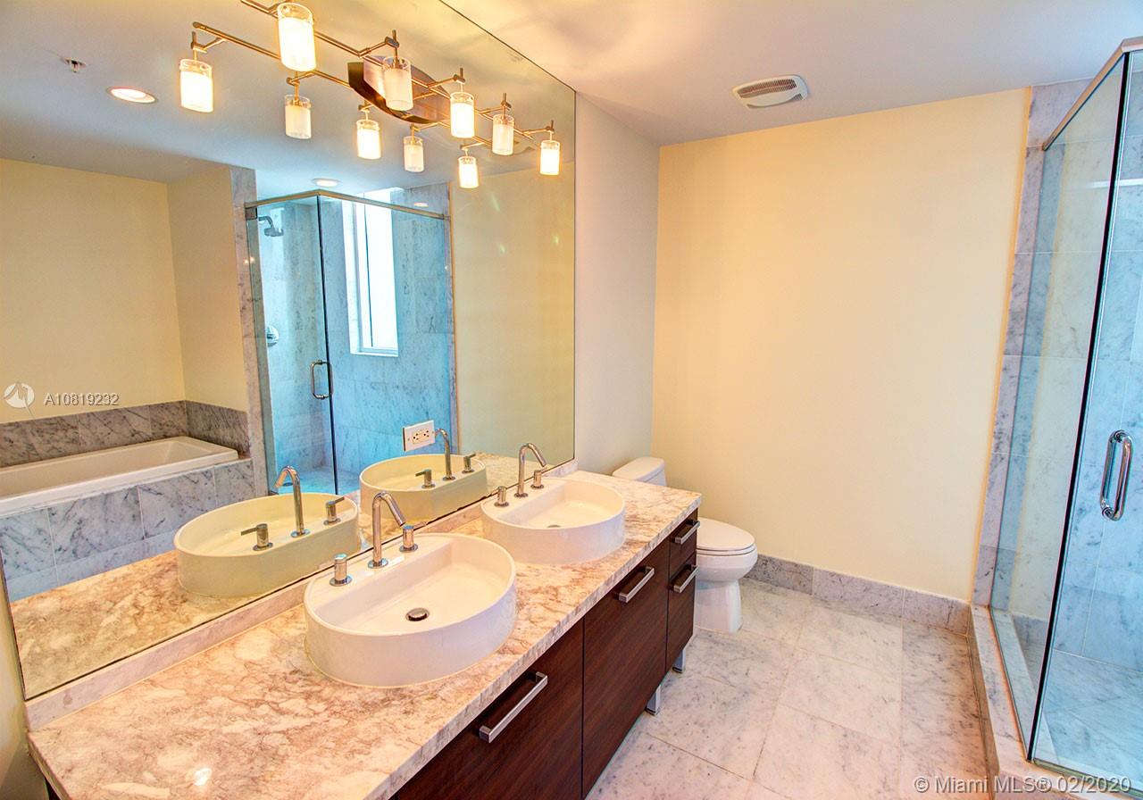 Direct-water views from this spacious 2-bedroom, 2-bathroom unit with private terrace at Vizcayne South Tower ideally situated bayfront in the heart of Downtown Miami, walking distance to an array of restaurants, shopping and entertainment. 1,195 SF of interior living space offering (NO CARPET) beautiful dark brown wood-grained porcelain flooring throughout, open-concept kitchen with granite countertops and stainless-steel appliances and in-unit washer/dryer. Master bathroom boasts dual vanity, glass-enclosed shower and soaking tub. Large private terrace overlooking pool deck and Biscayne Bay. Vizcayne boasts resort-style amenities including 4 pools, state-of-the-art fitness center, full-service spa and club rooms.