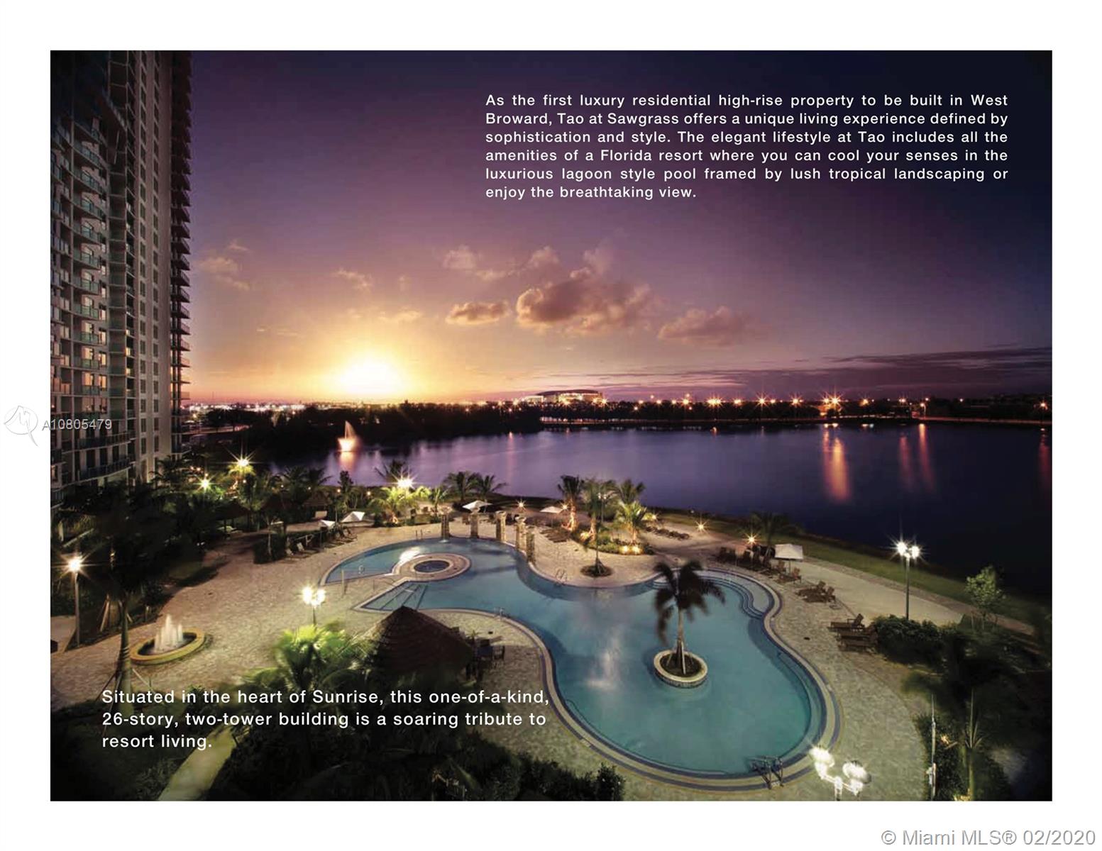 RESORT-STYLE LIVING in this one-of-a-kind spectacular 3 Bedroom 3 Bath corner unit on the 24th floor of TOA. Luxuriously finished and upgraded condo with amazing modern design, custom trim, updated closets, Nest thermostat control HVAC and a full-size front-load washer/dryer. The open kitchen features top-of-the-line stainless steel appliances, custom cabinetry and beautiful quartz countertops featuring a counter-top dining area (for 4). Relax in your oversized master suite featuring walk-in closet and a spa-like master bath with oversized shower. Walk out to one of your two balconies. Take in the incredible views of the lagoon, pool and everglades. Two parking spots included. Just steps away from fine dining and world-class shopping @ Sawgrass Mills Mall. THE BEST unit in TOA. A MUST SEE