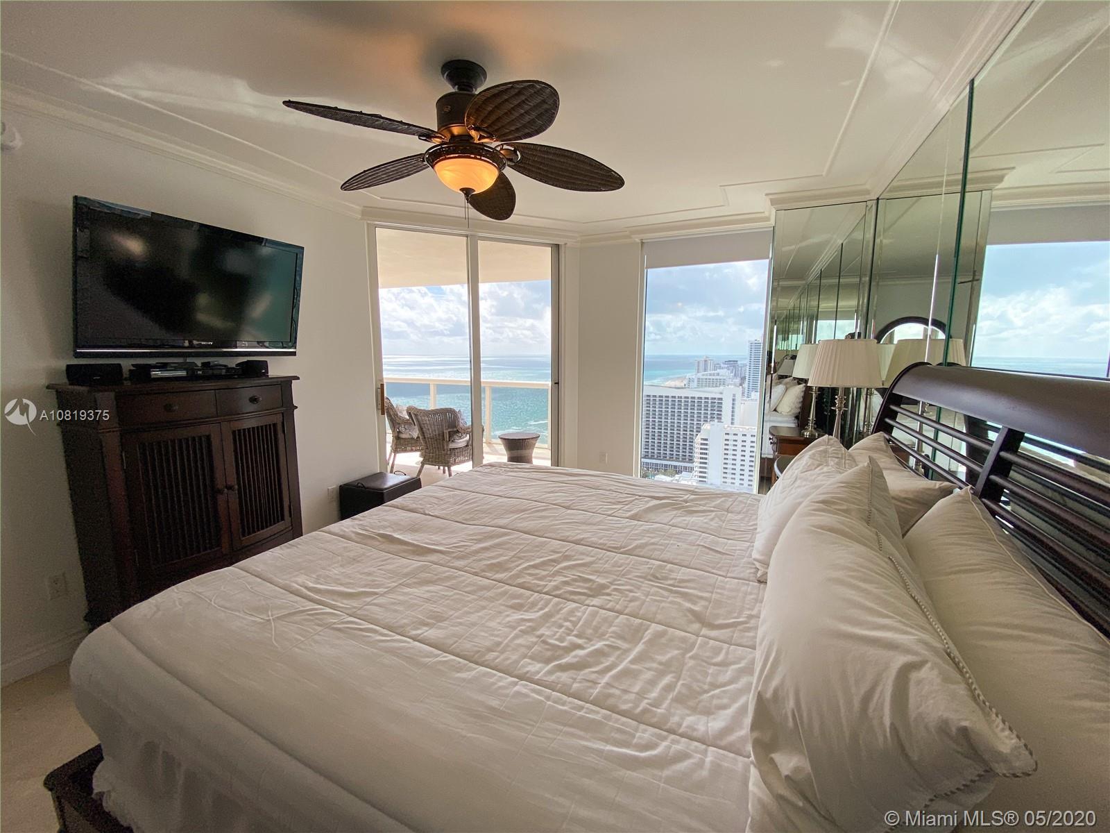 JUST REDUCED! OWNER IS EXTREMELY MOTIVATED! Welcome to Paradise, otherwise known as the Green Diamond! This rare 04 line two-bedroom/two-bathroom unit with unobstructed views of the Ocean, the Bay, Downtown Miami, South Beach and more has all you need to live the lavish life you deserve. Top of the line amenities including: three-floor gym, giant pool, two spas, deli/restaurant, salon, tennis courts, valet parking, club house, theater room, adult lounge, day/night security, teen/kids fun rooms, and even a private beach access w/service. Unit is 1,490sq ft and features marble floors, split-floor plan, large master suite w/walk-in closet, large master bath with jacuzzi, modern kitchen, and a VIEW like no other. Unit comes completely furnished but it is negotiable.