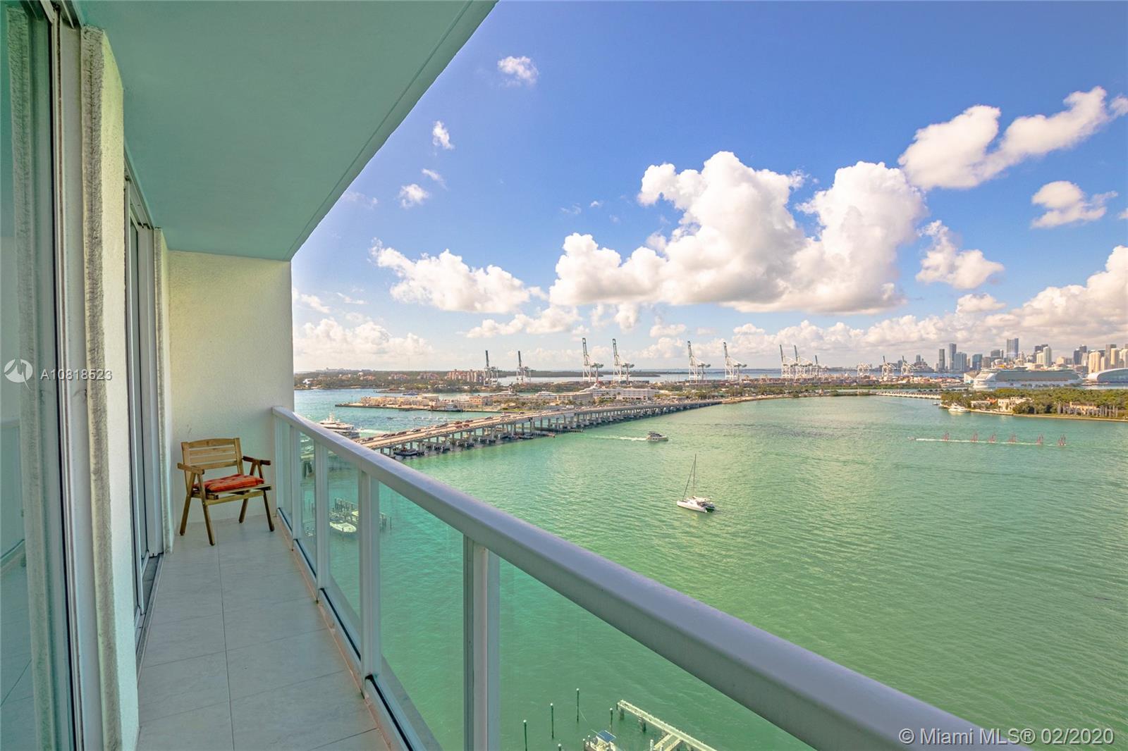 Enjoy breathtaking Bay and downtown skyline's view from this one-of-a-kind 3-bedroom unit. This is one of the few 3bed with 2 private balconies and 2 covered parking spaces. FULLY PAID SPECIAL ASSESSMENT. Fully remodeled bathrooms and kitchen. Custom-built California closets in every room, full size washer and dryer. The Floridian condo offers 5-star amenities such as two swimming pools, fitness center, salon and spa, tennis court, basketball court, convenience store, poolside restaurant and complimentary valet for guests.