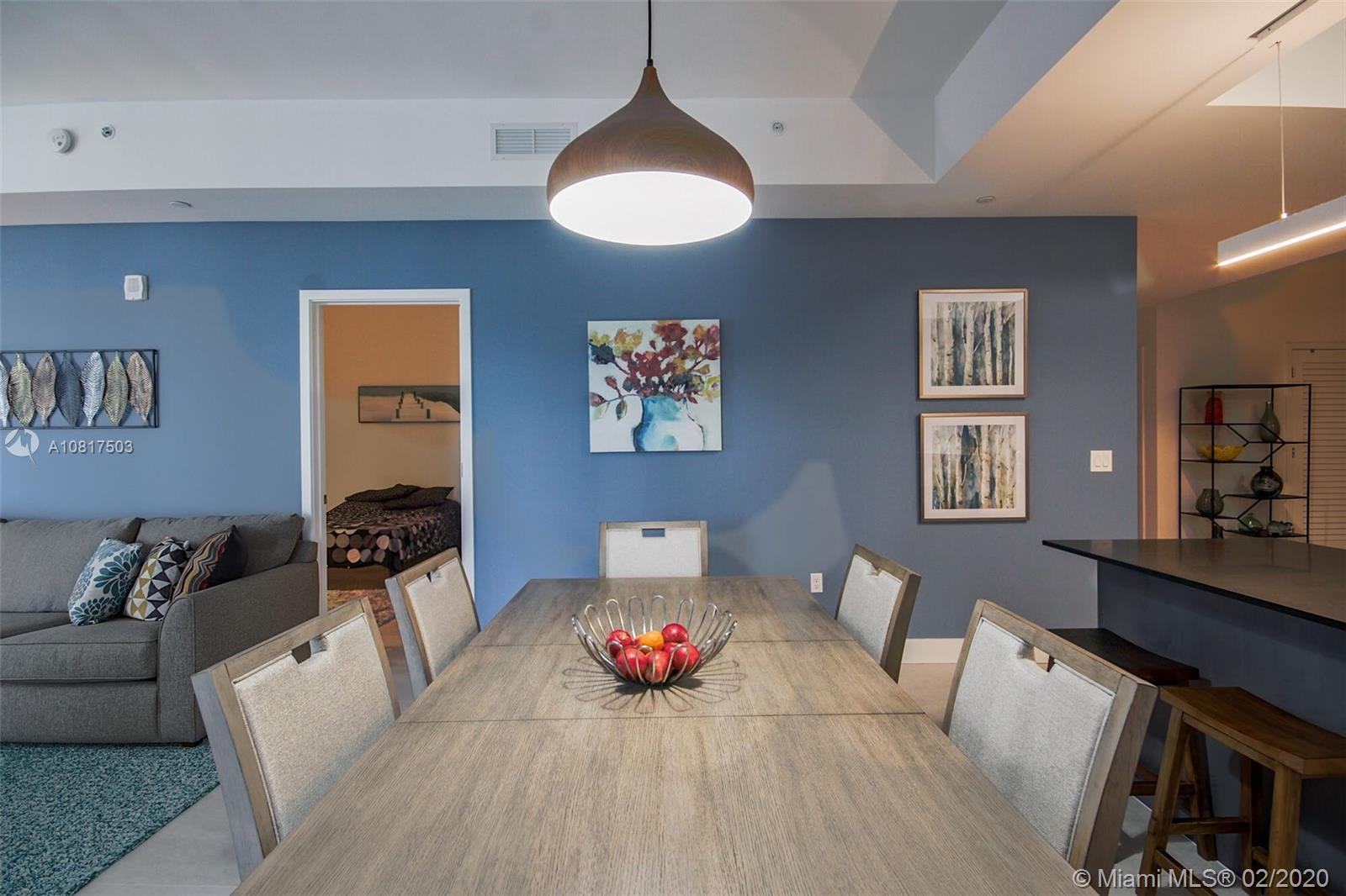 Immaculate lower penthouse, furnished, corner 2 Bed plus Den, 3 FULL Baths at 1010 Brickell. 4706’s higher ceilings give a voluminous feeling rare to Brickell, clearing neighboring buildings to the South. Impressive floor-to-ceiling glass throughout the master bed with TWO exposures. Oversized, matte grey porcelain tile throughout, upgraded light fixtures, black-out/solar shades, and built-out closets are just a few features that make 4706 unique. Full-sized washer/dryer in-unit. Recently painted and furnished. Large den can be enclosed easily. Massive terrace. 1010 Brickell’s amenities are unsurpassed: Rooftop pool and hot tub, Treetop Restaurant and Bar, movie display, basketball court, indoor pool, racquetball court, hammam spa, running path, game room with bowling and golf simulator.