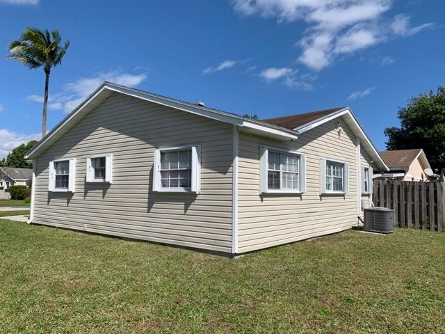 Beautifully maintained attached villa. vaulted ceilings. Split bedroom plan. Kitchen updated, newer appliances. A/C less than a year old. Bathrooms updated. Tile and laminate flooring. Fenced patio area. Wide greenspace. Accordion Hurricane Shutters. 1 car garage and 2 car driveway for plenty of parking. Hard to find 4 bedroom family home. Low HOA fees.